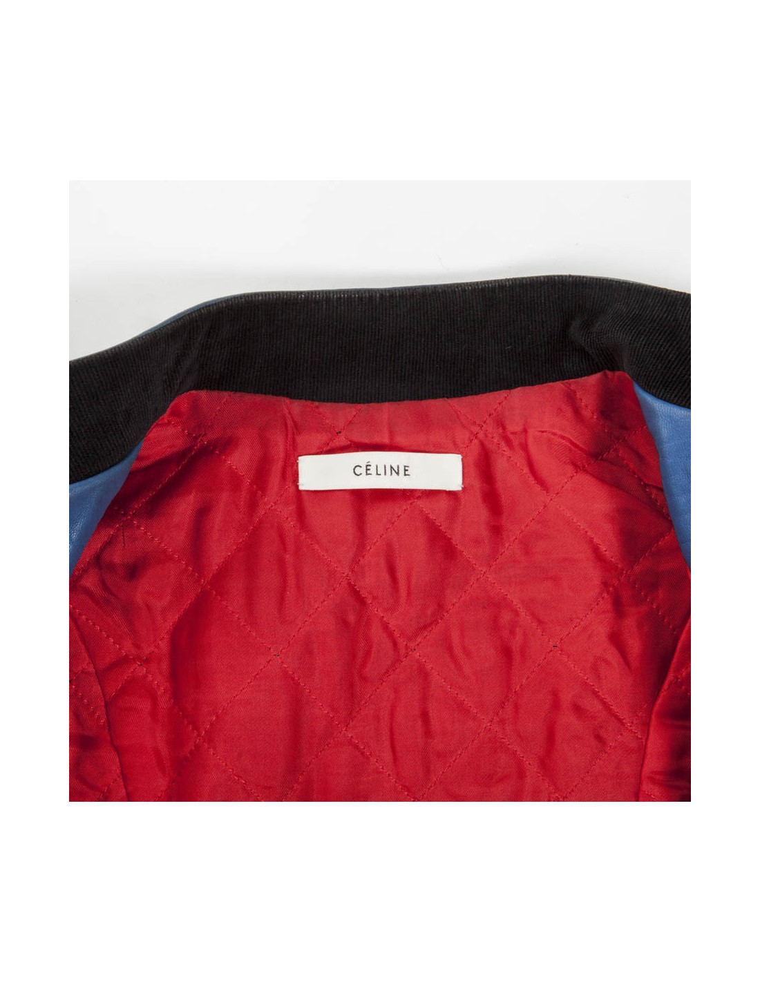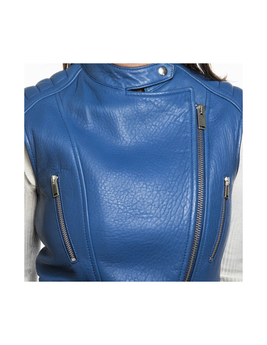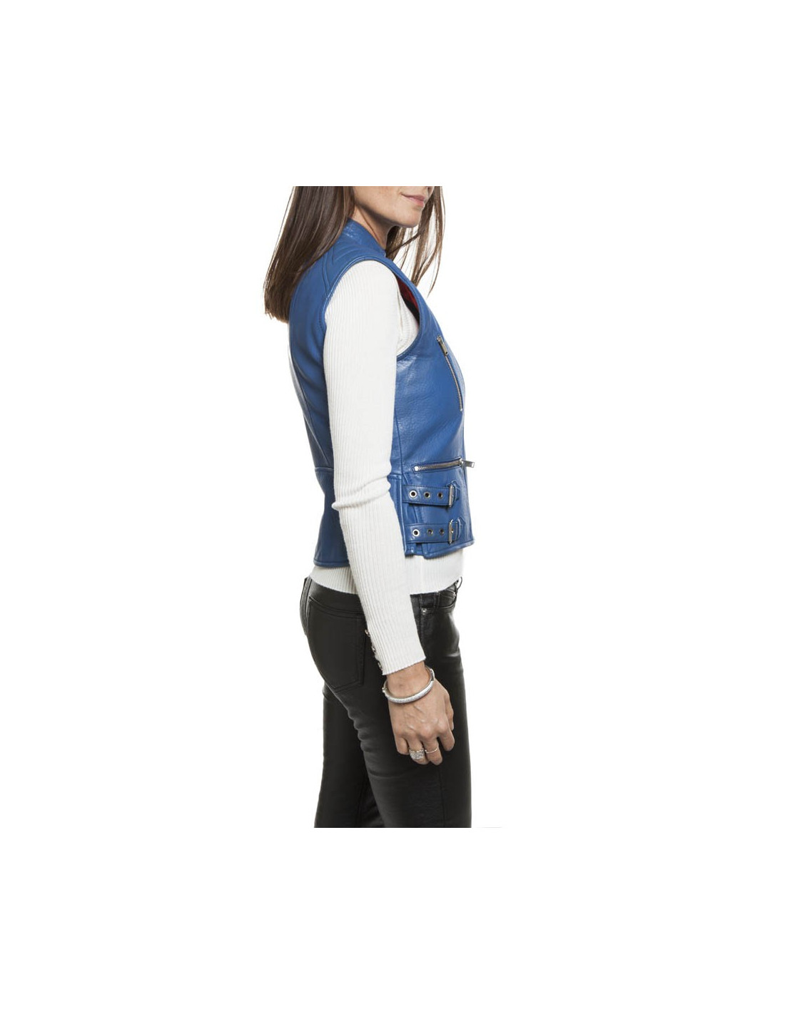 Céline sleeveless jacket way perfecto in electric blue Lamb that closes with a zipper diagonally on the chest.