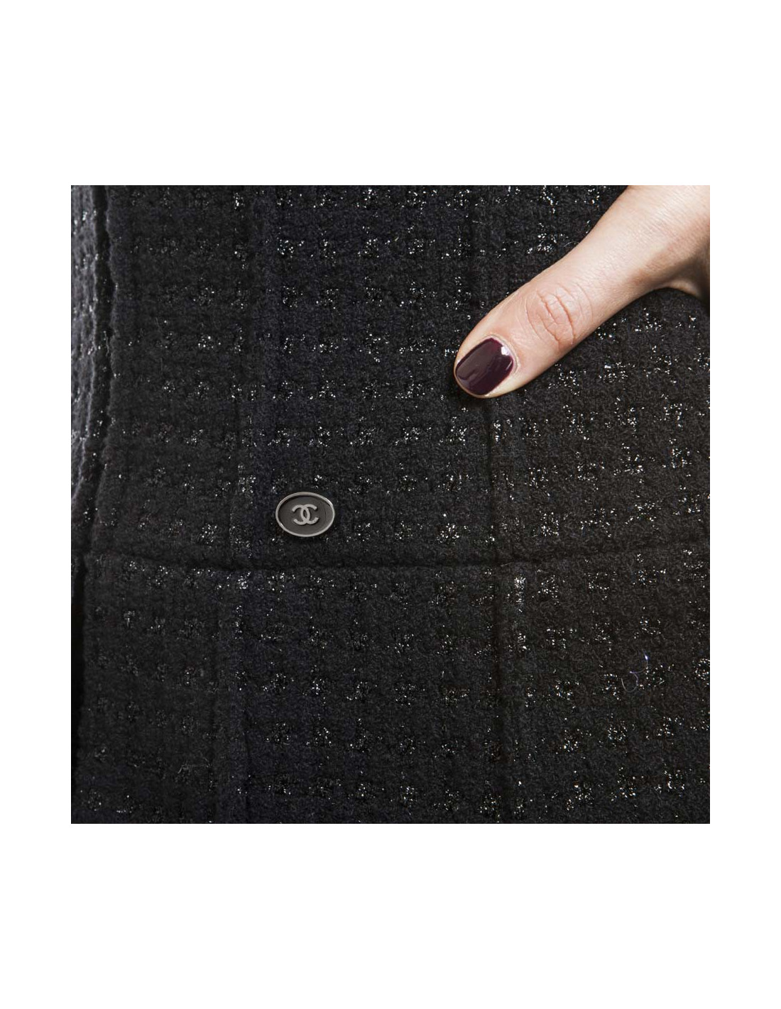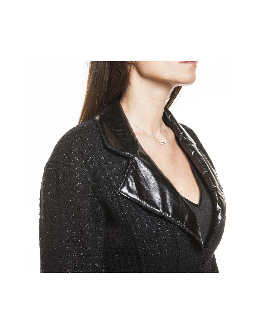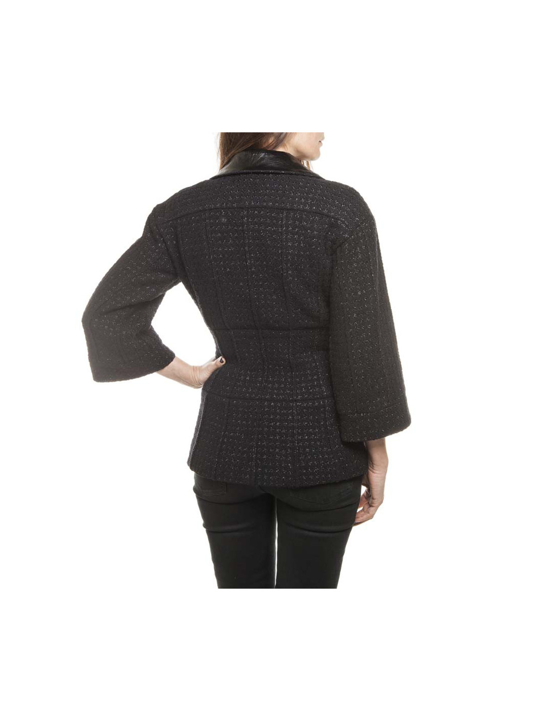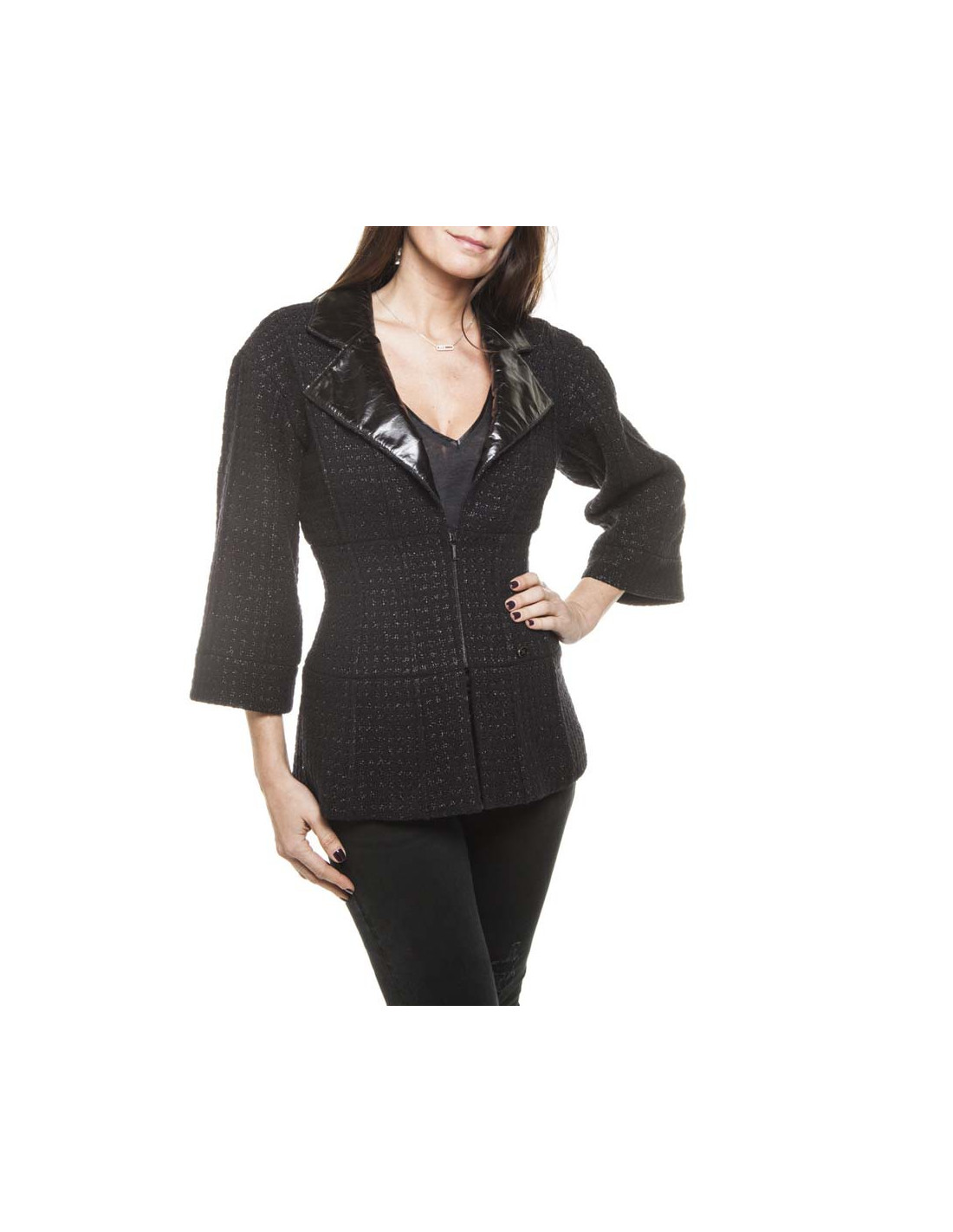 CHANEL T 36 black shiny threads and black tweed jacket
