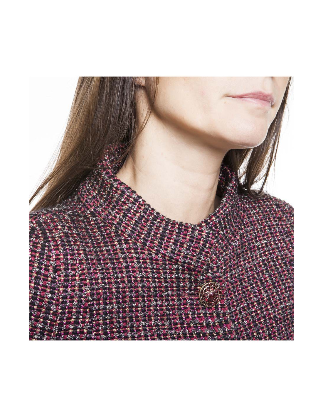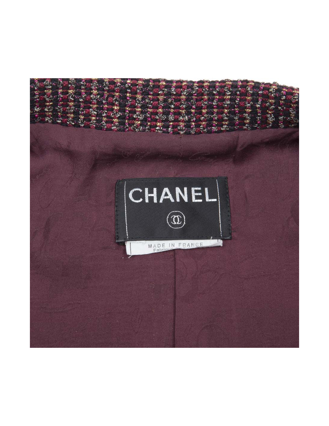 Chanel pretty jacket, close to the body, in lurex with multicolored bright red, silver, plum yarns.