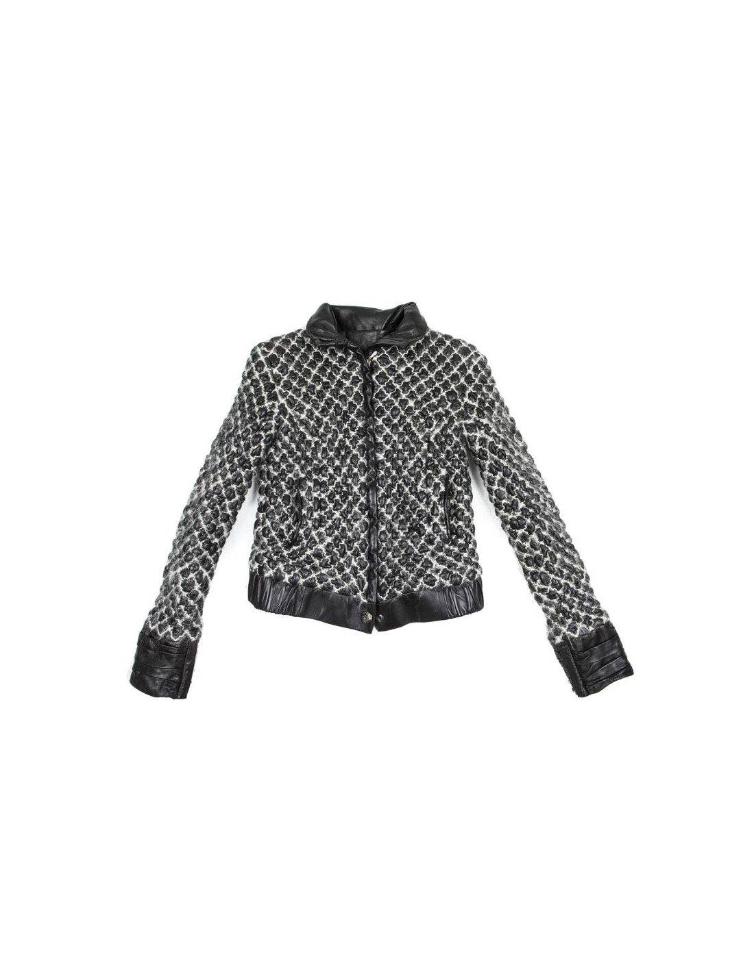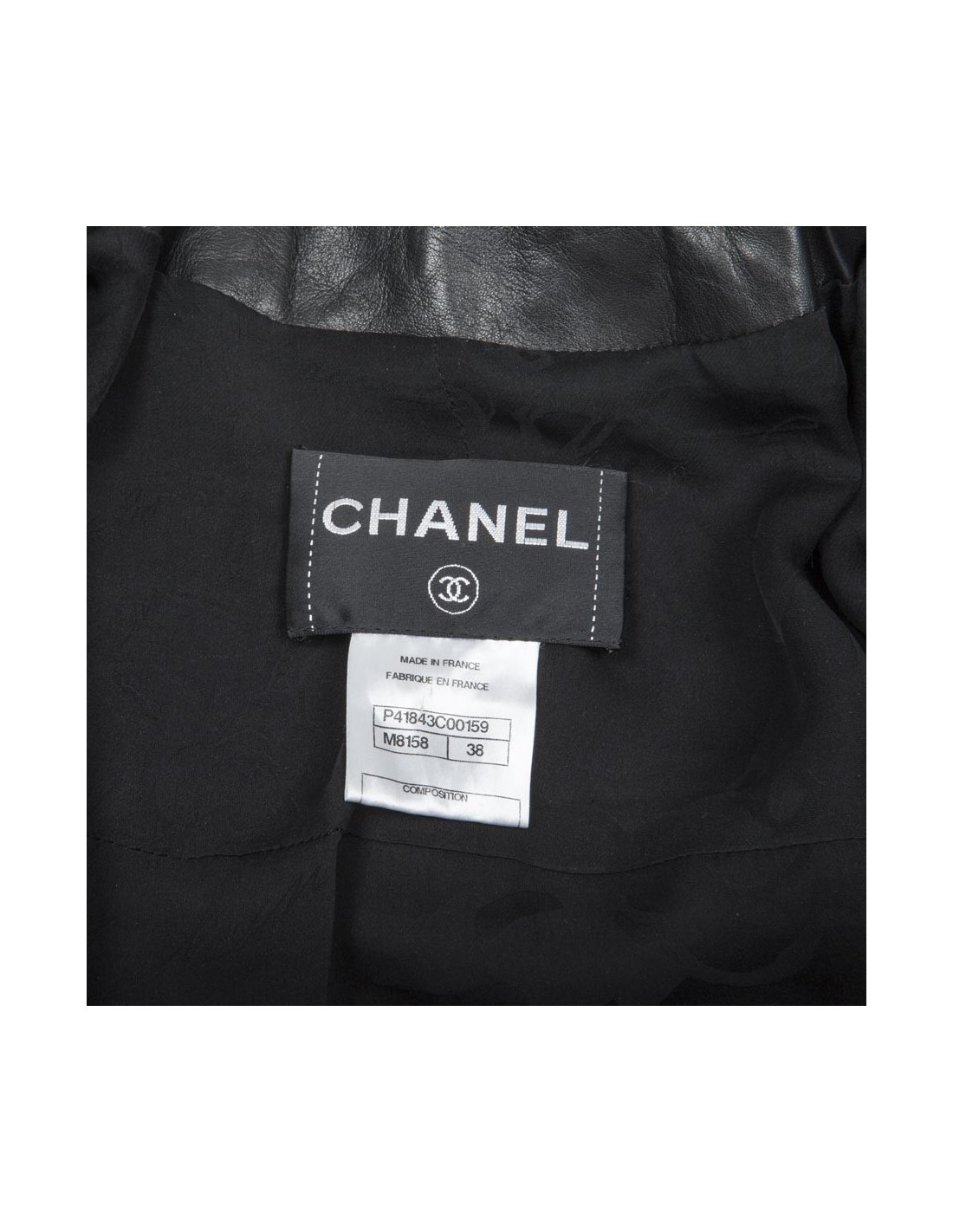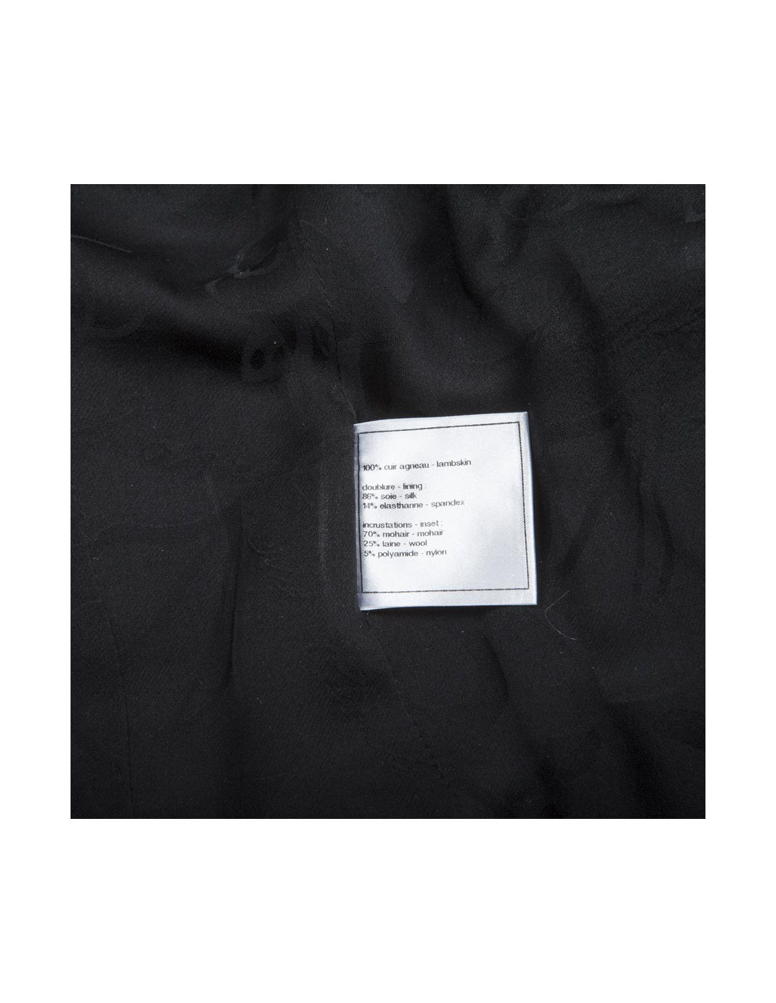 CHANEL jacket in black lamb leather stitched with white mohair size 38FR