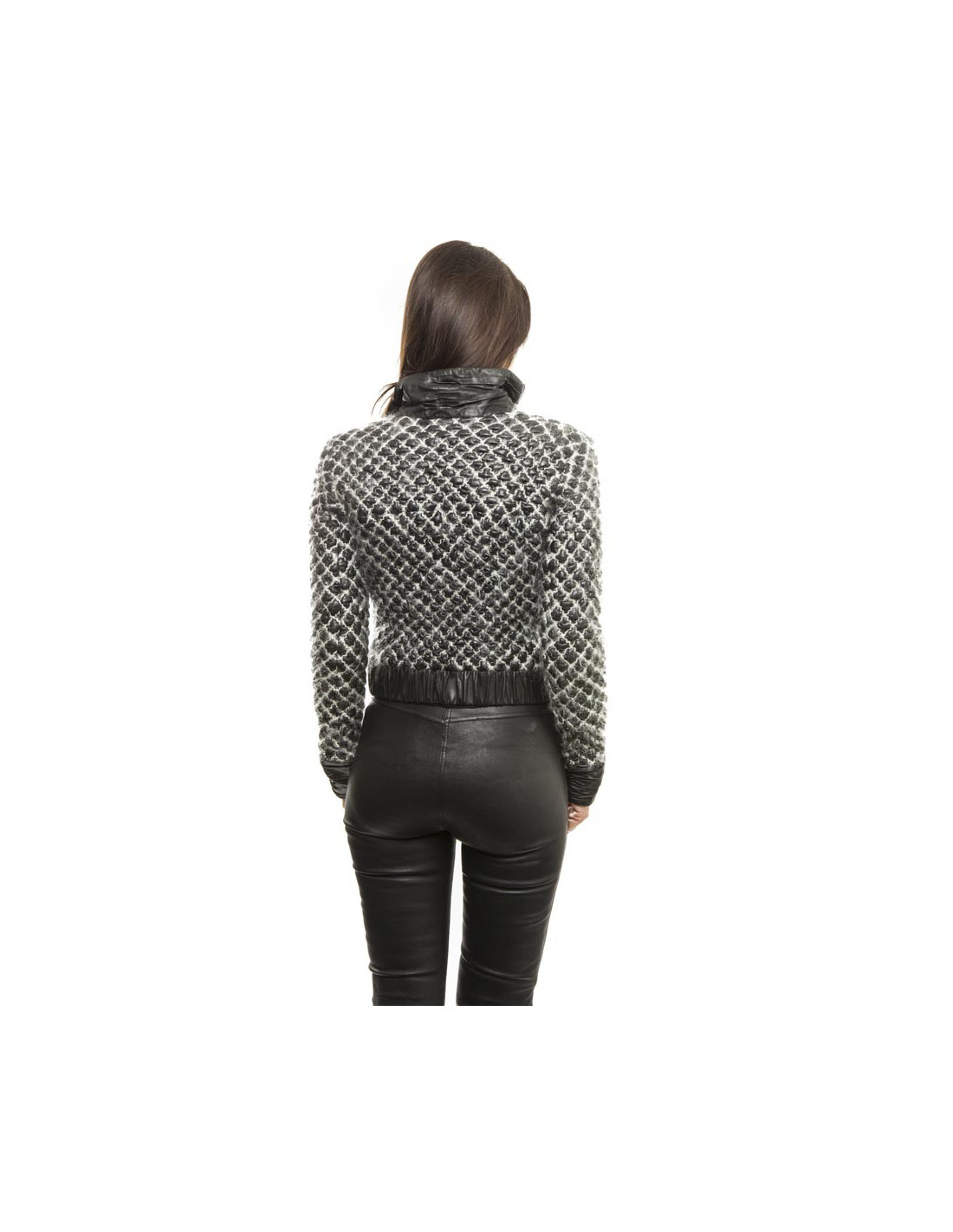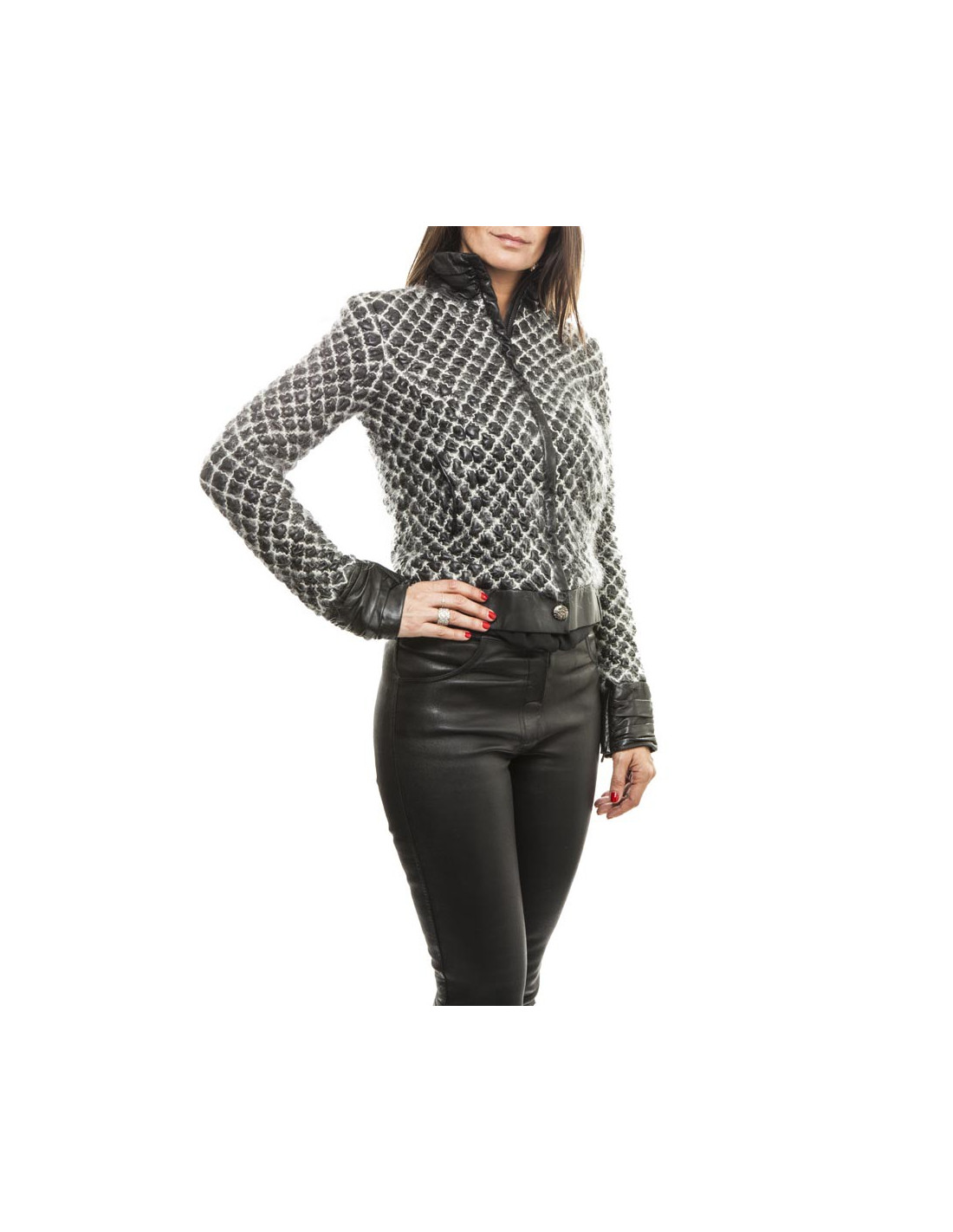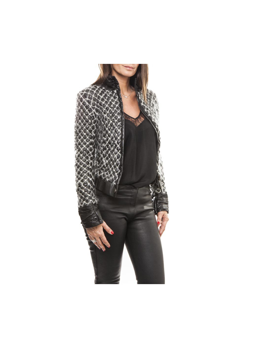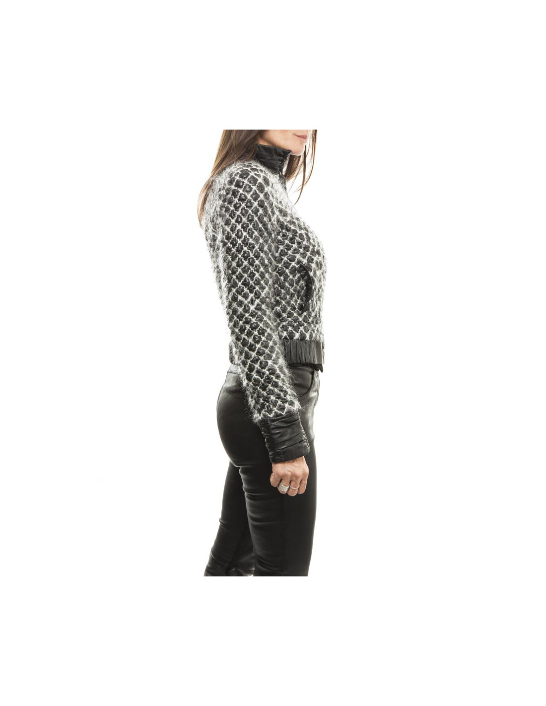 CHANEL jacket in black lamb leather stitched with white mohair size 38FR