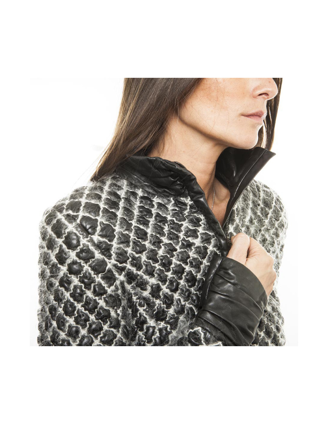 Dimensions: width of the shoulders: 38 cm, length of the sleeves: 60 cm, wrist circumference (opening by 9 cm zipper): 24 cm, height of the jacket: 49 cm.