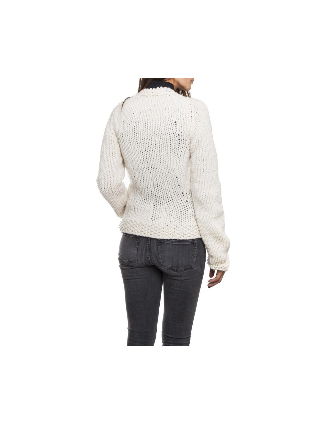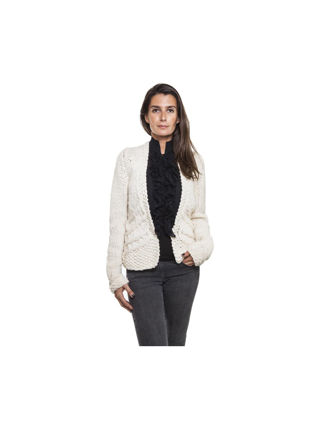 CHANEL knitted waistcoat in unbleached wool with a black front plastron. It closes at the front with 6 buttons marked "CC" black. Fall 2003 collection. size 36 FR