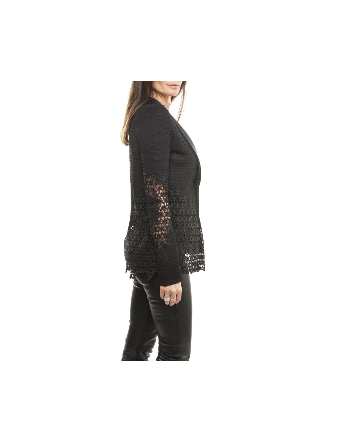 Chanel cardigan jacket in black cotton and lace, size 38FR
