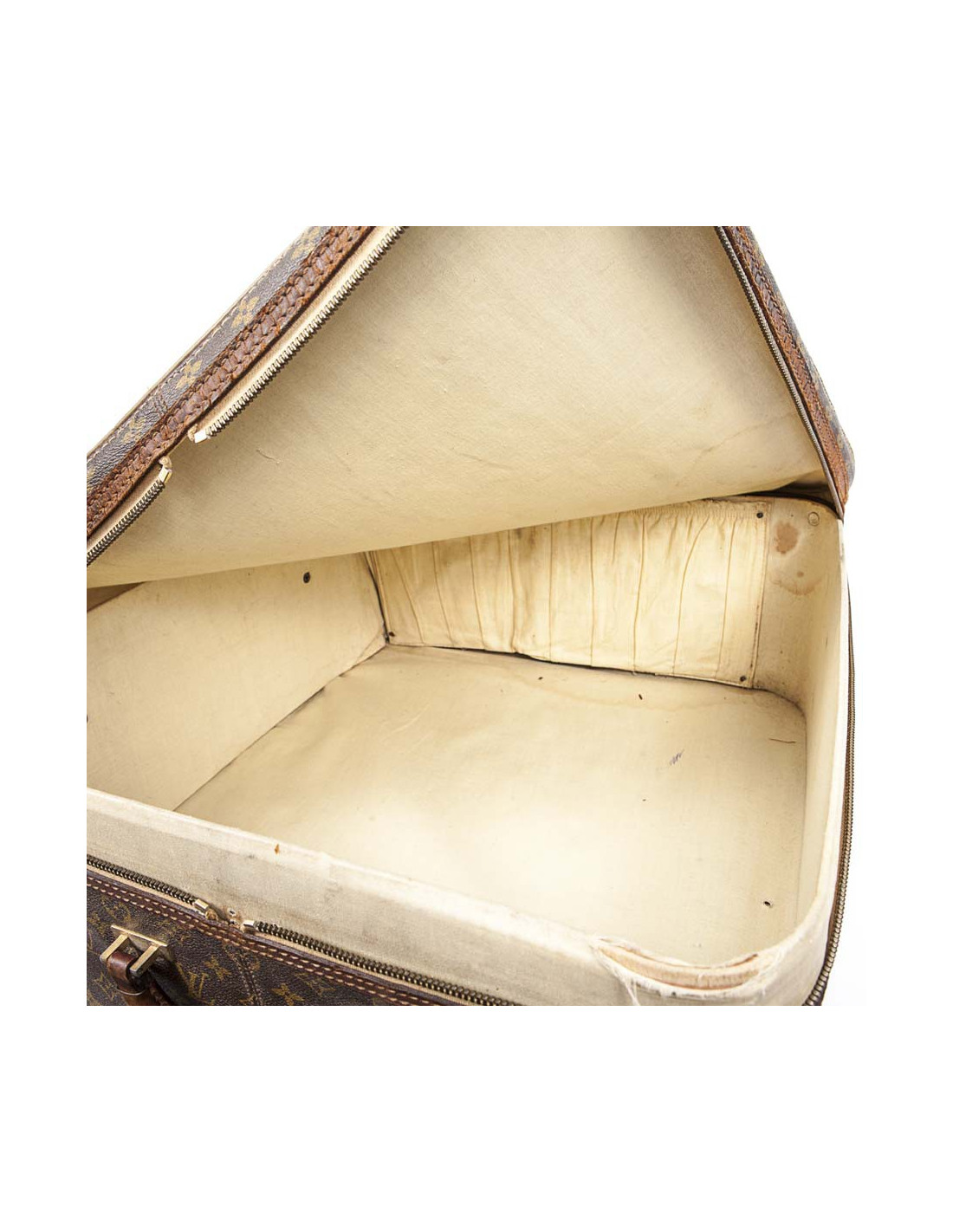 Vintage! The Maison Louis Vuitton monogram canvas soft bag. Zipped. The jewelry is gold metal. The Interior is beige fabric with a small patch pocket. A few spots of wear and a trace of pen. Tear two corners inside. Cow leather corners are weathered and the handle. A few white spots on each side of the bag. See photos. State vintage.