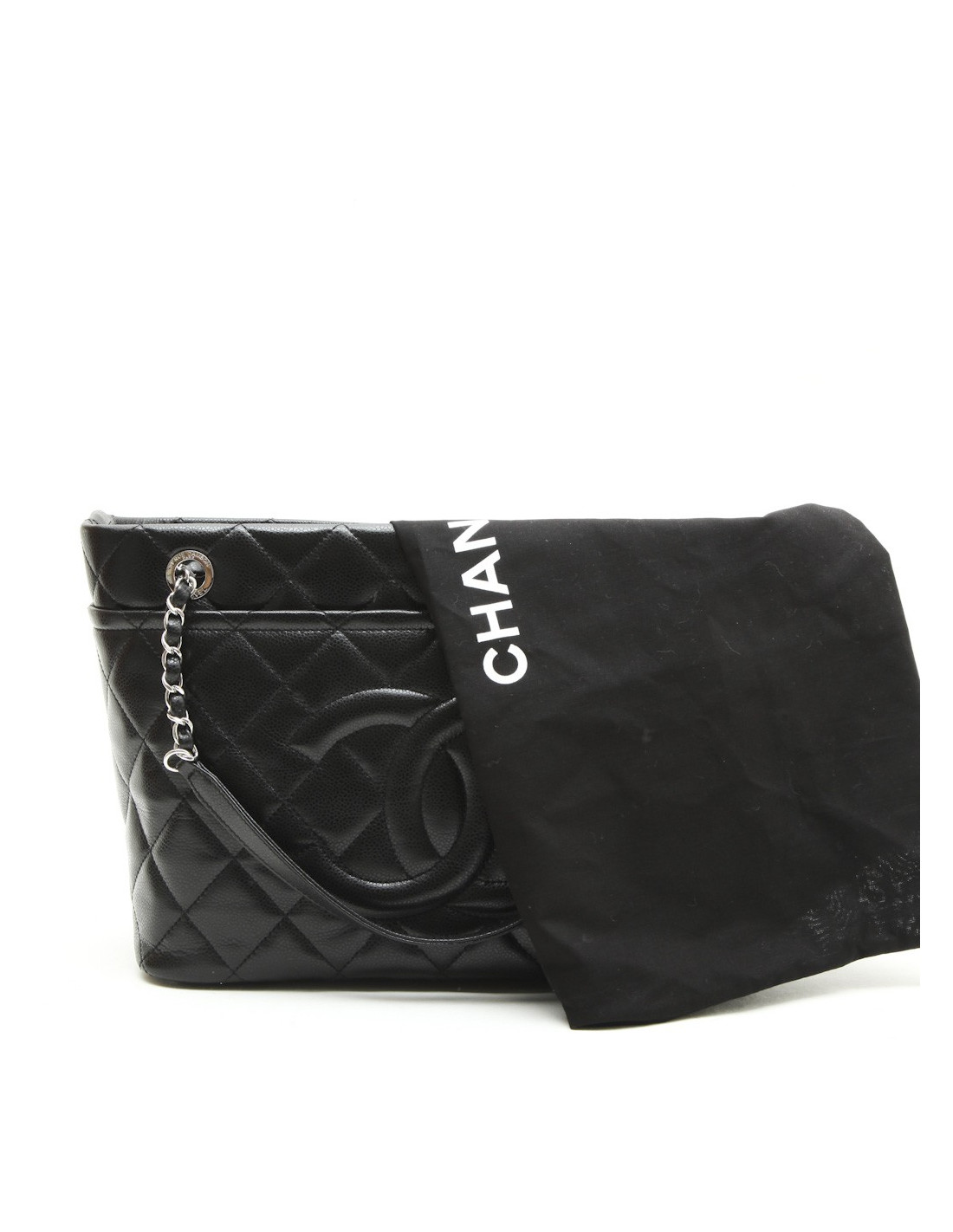 Chanel GM black grained leather tote bag. New condition. Silver hardware. Snap closure.