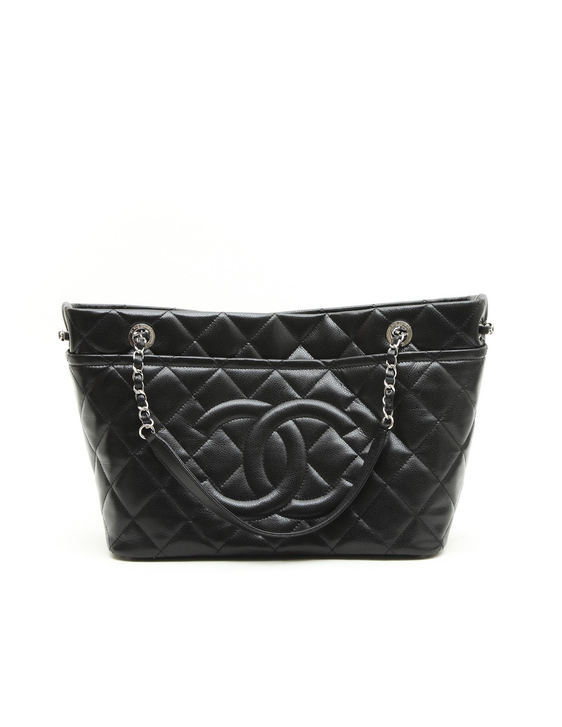 Chanel GM tote bag in black grained leather . New condition. Gilded metal hardware. Snap closure.