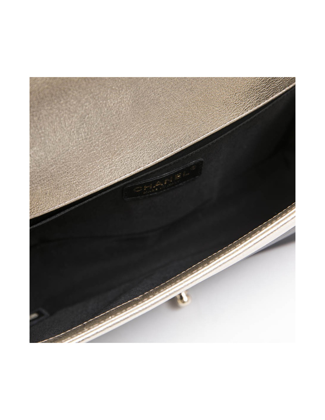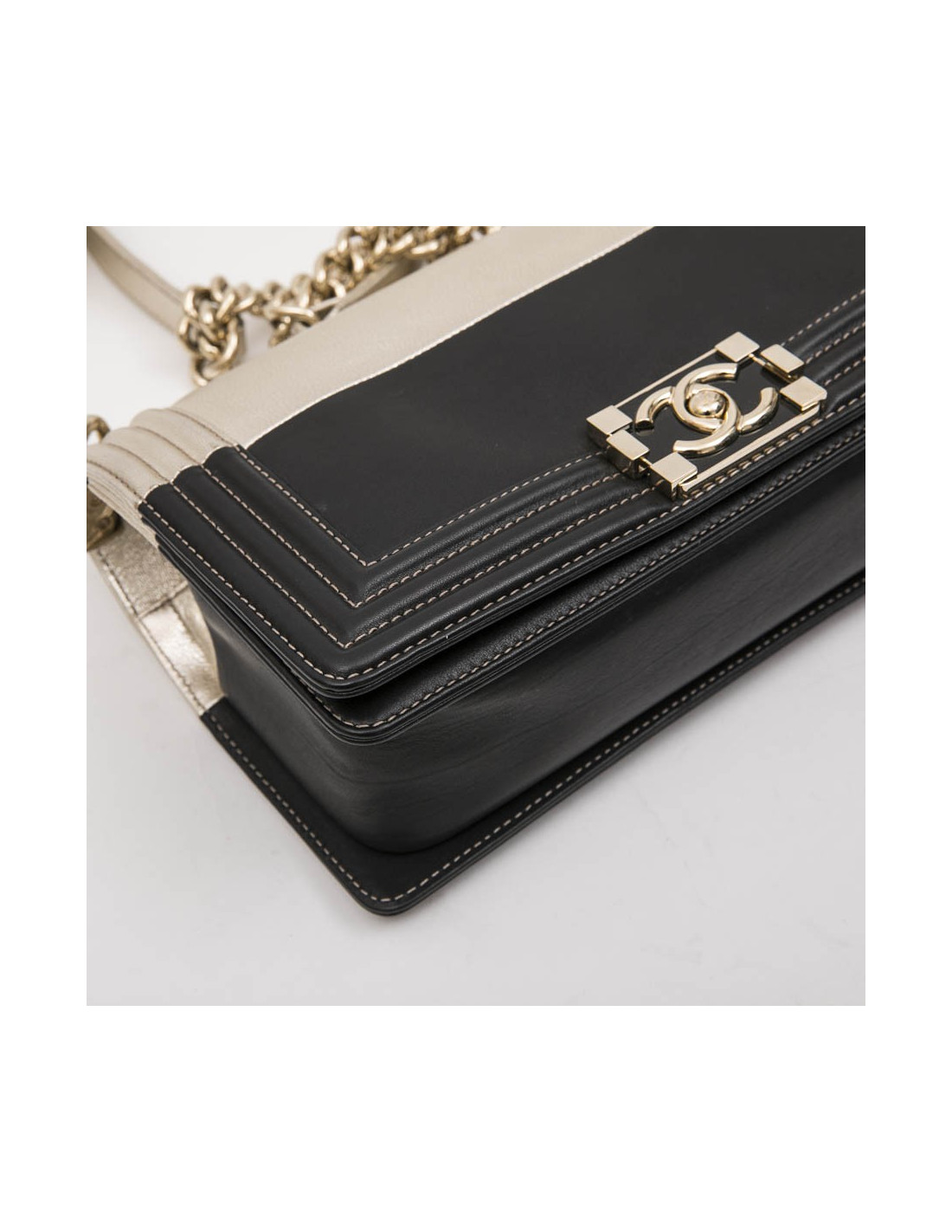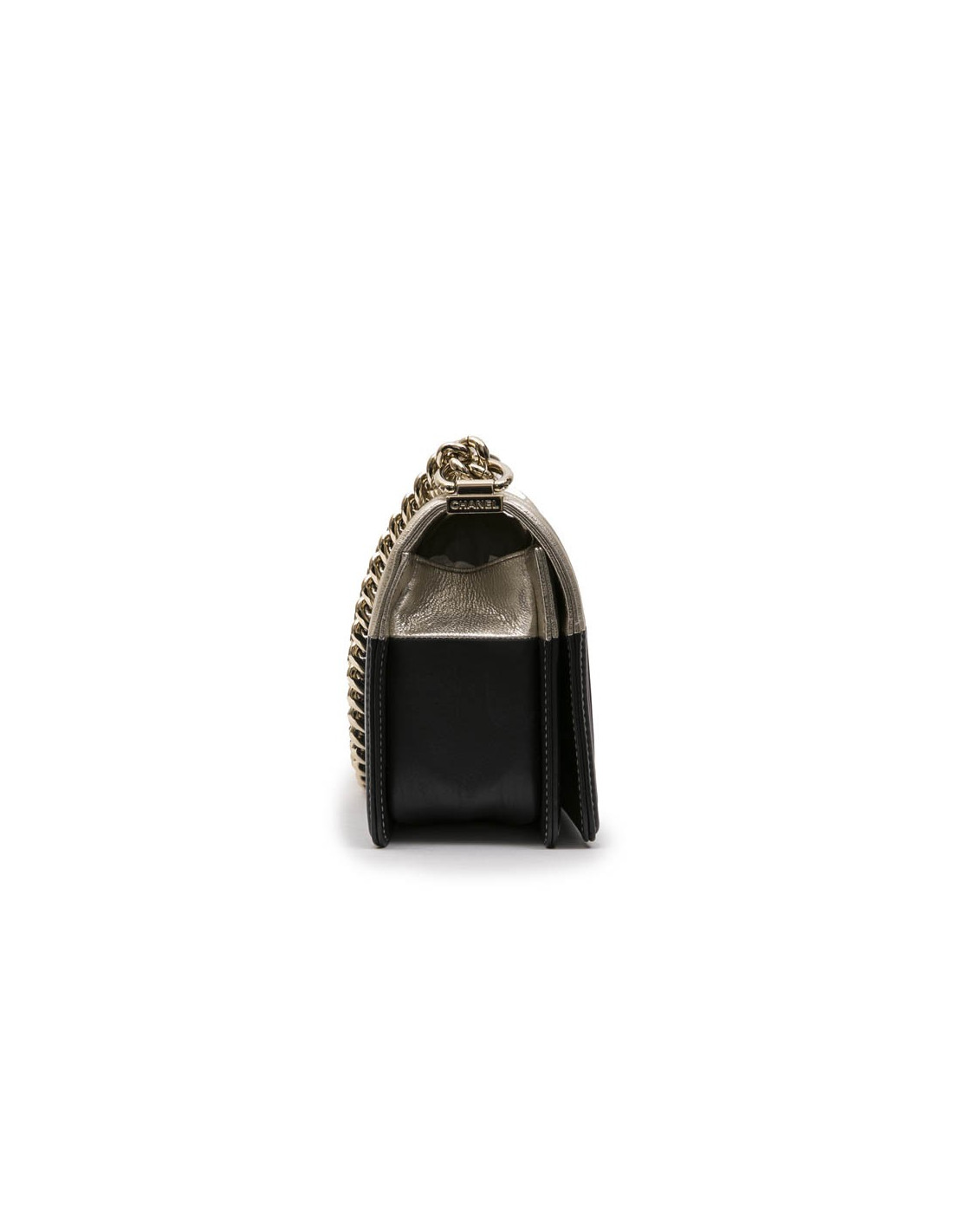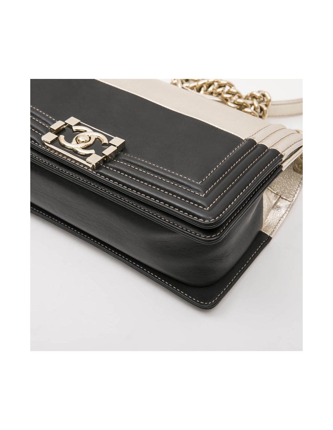 CHANEL Boy bag in black and pale gold smooth lamb leather