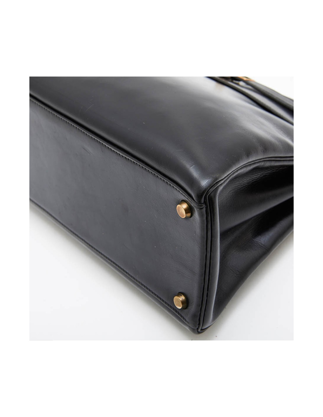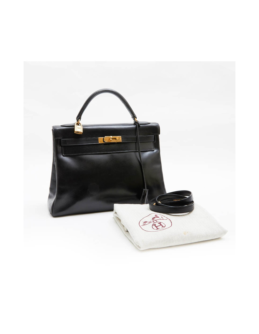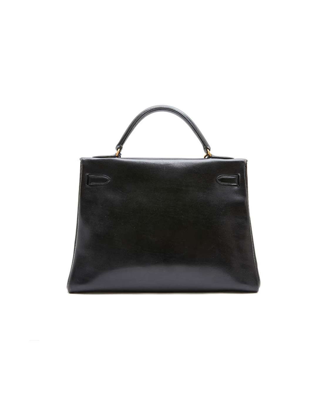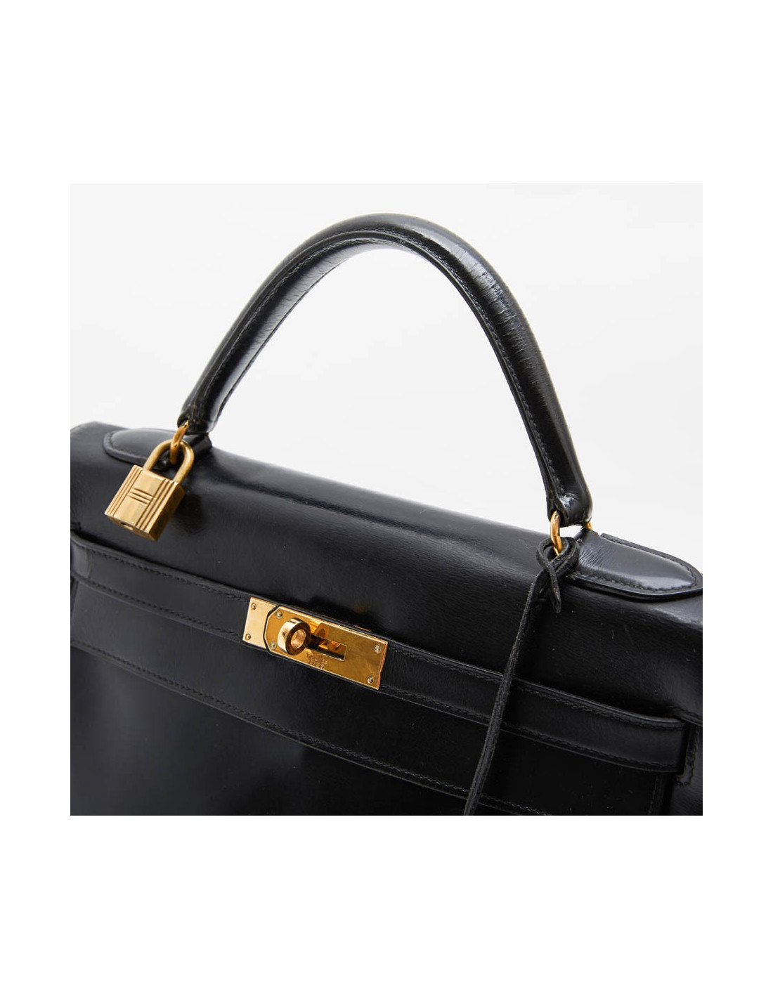 Hermes vintage 'Kelly 32' bag in black box leather. Gilded metal hardware.