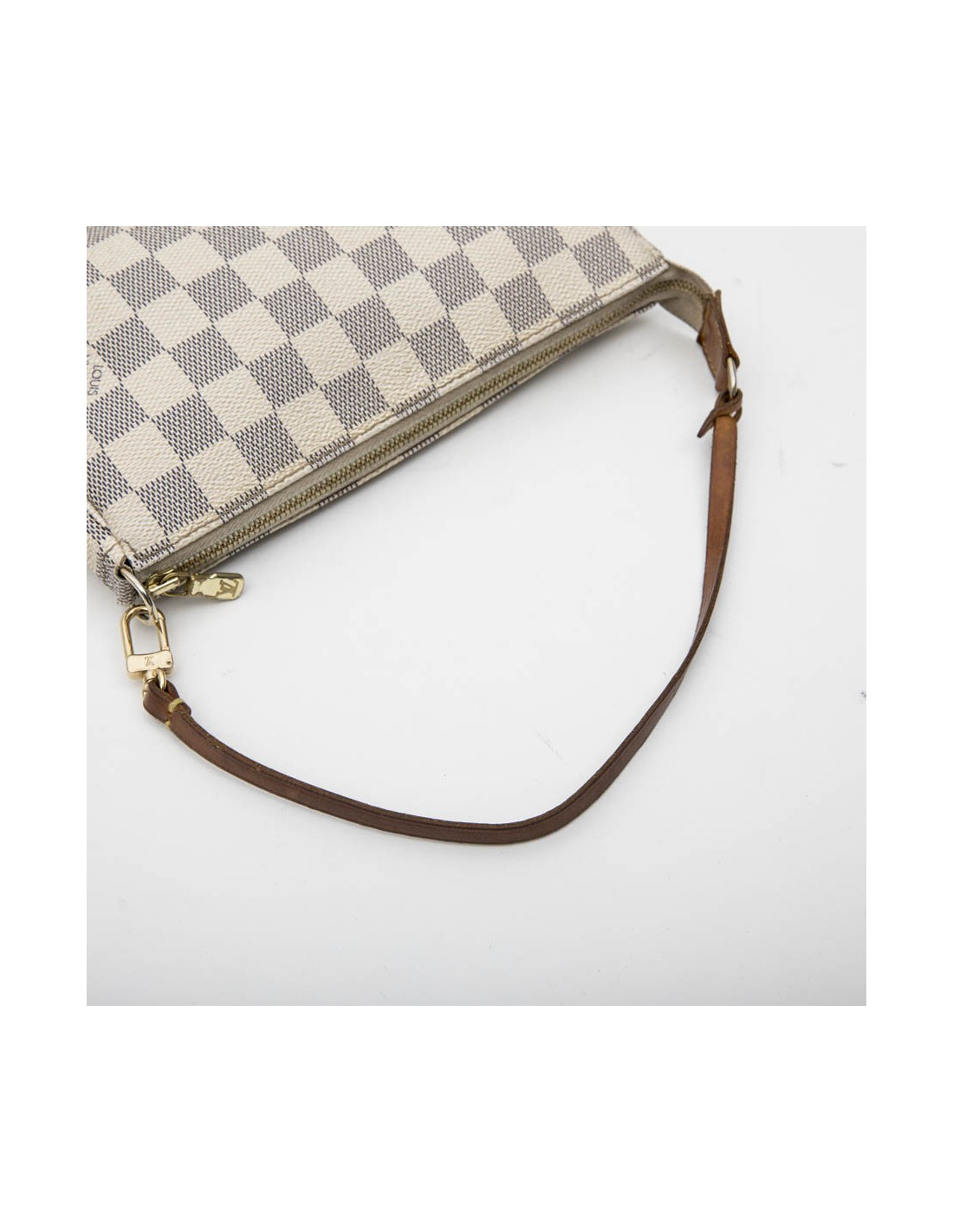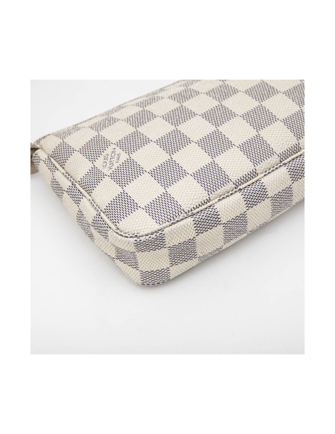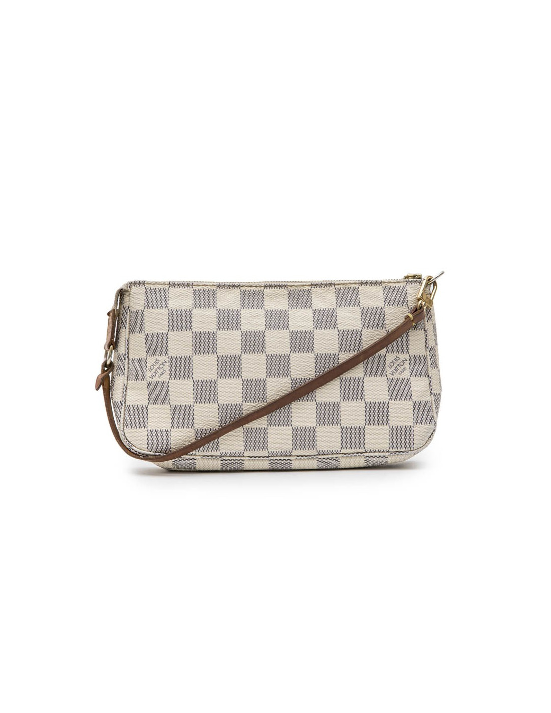 Louis Vuitton clutch bag in Azur checkered canvas and natural cow leather finishes. Gilded metal hardware.