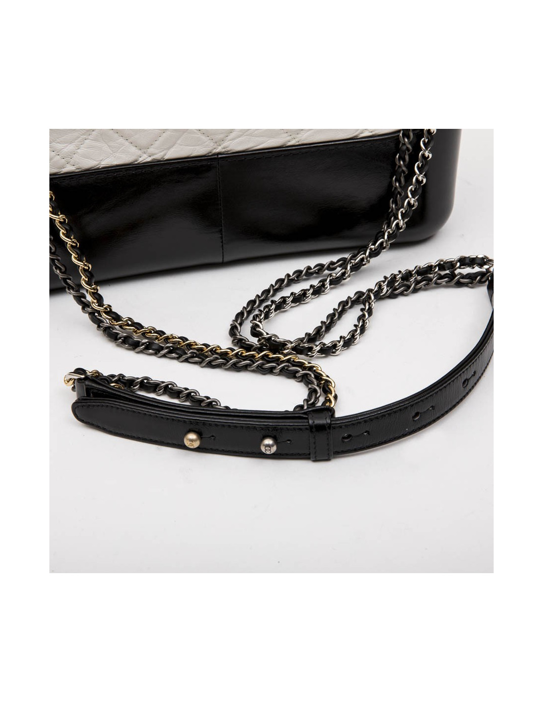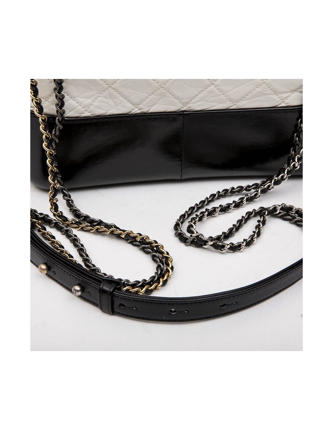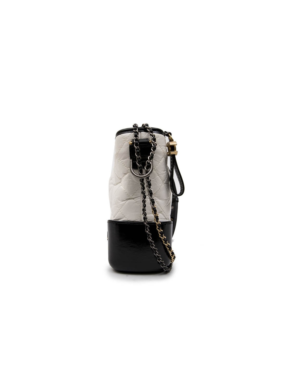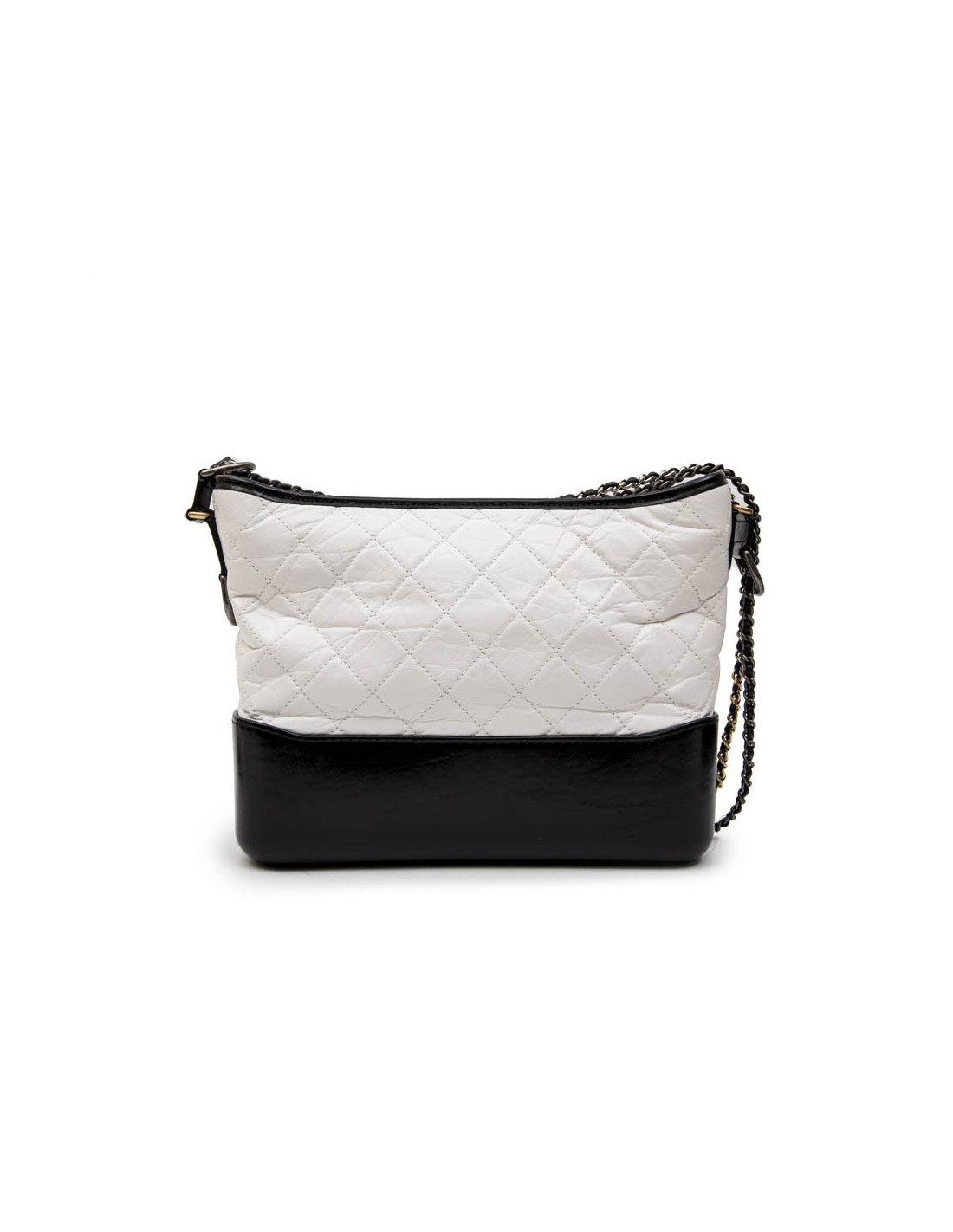 Chanel Gabrielle 'Hobo' bag in aged white quilted leather and black smooth leather. Zipper.