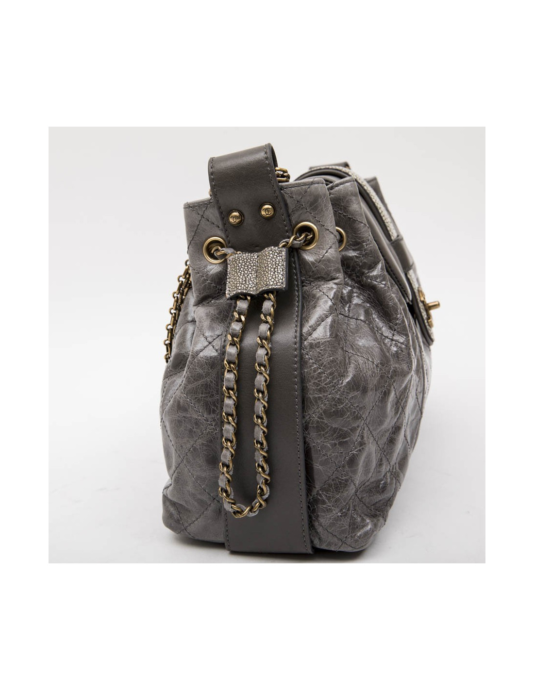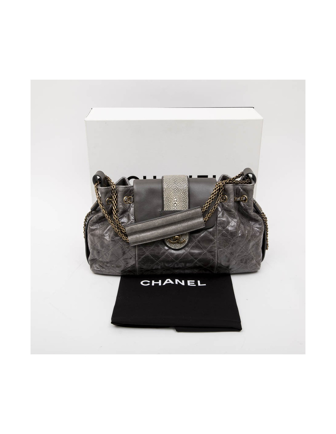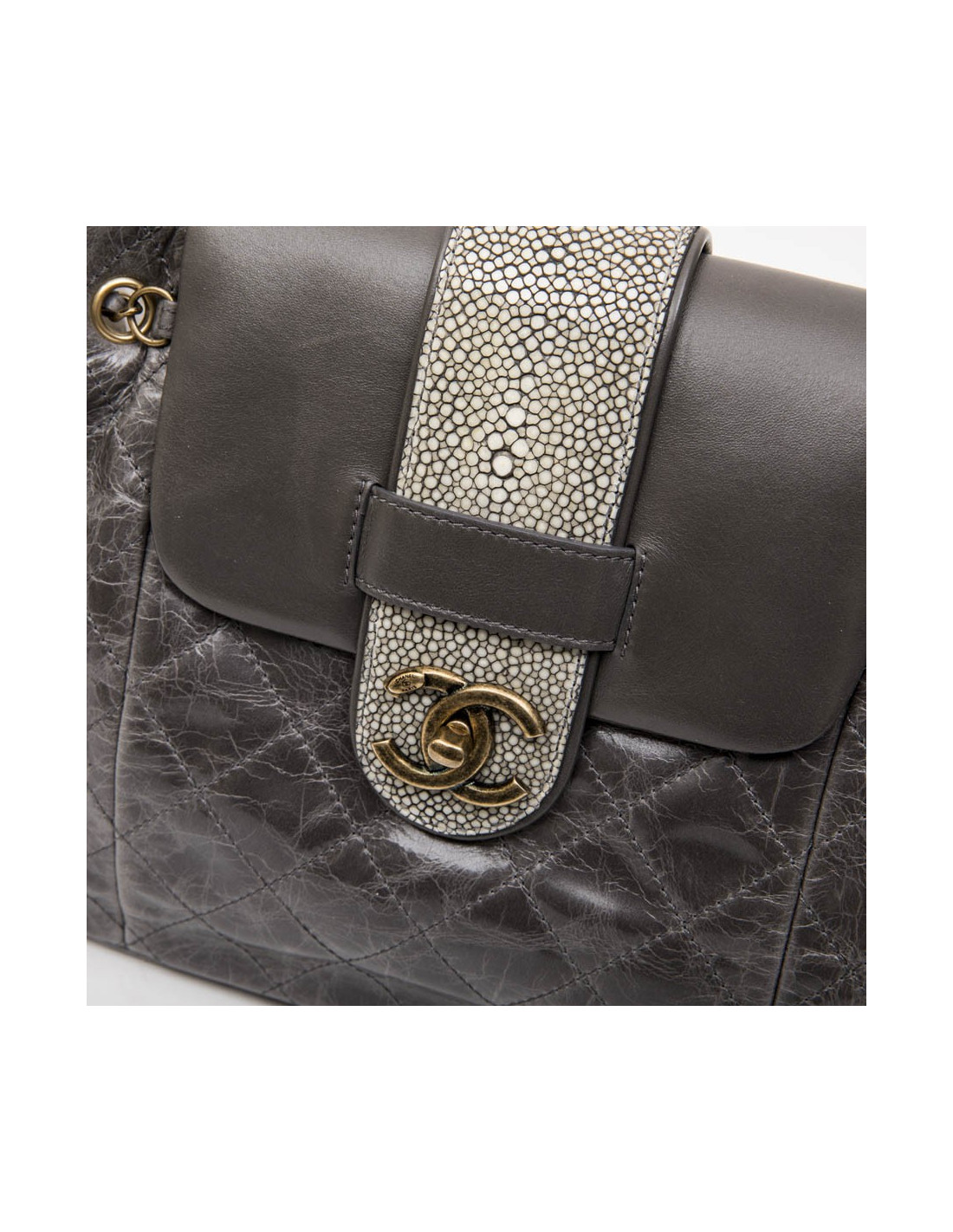 CHANEL bag in gray varnished quilted aged leather and galuchat