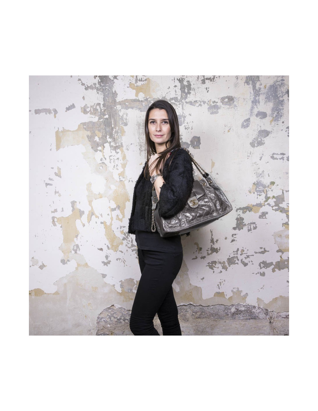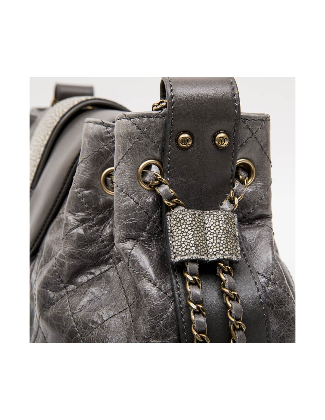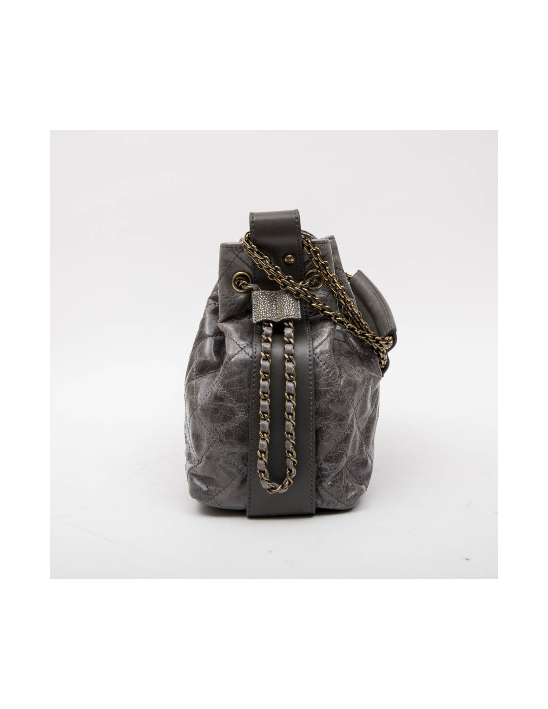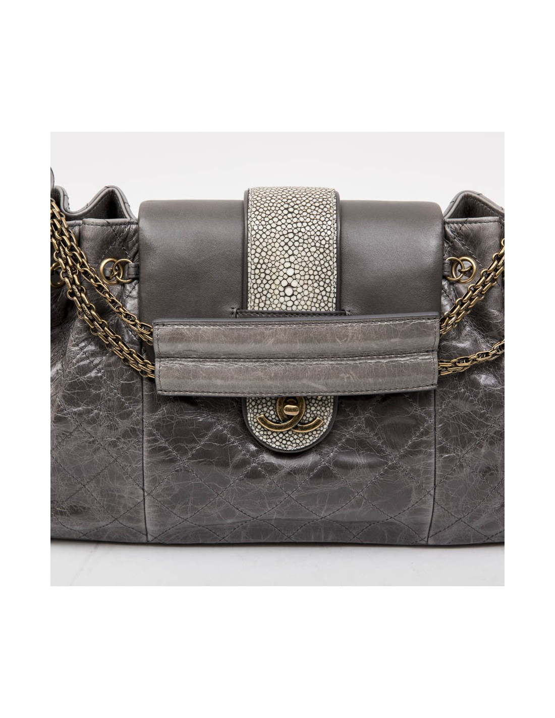 CHANEL bag in gray varnished quilted aged leather and galuchat