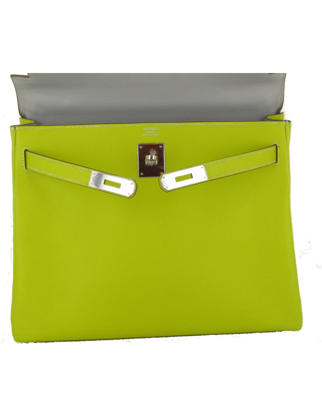 Kelly II 32 HERMES Candy lime and grey two-tone