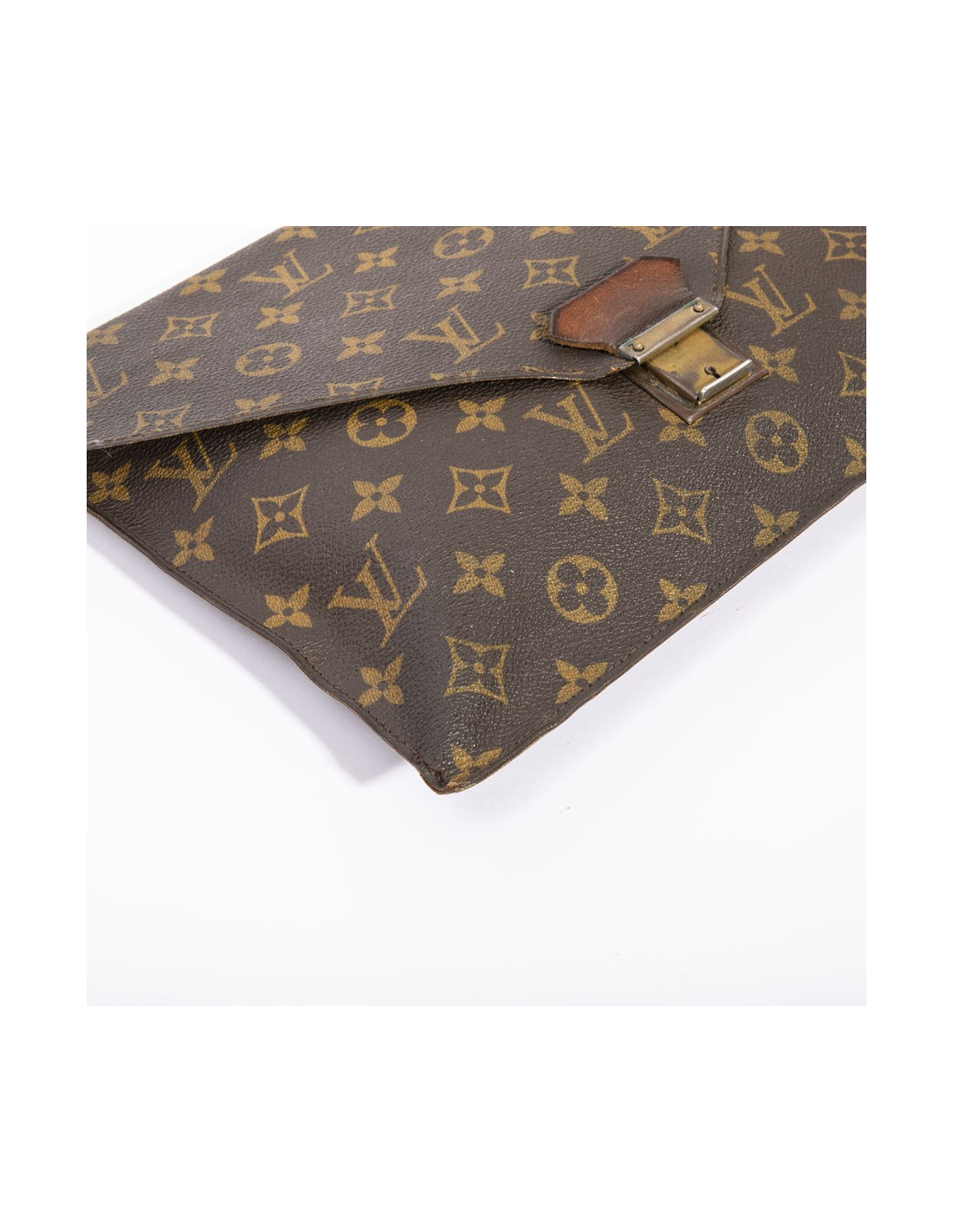 Louis Vuitton vintage clutch in brown Monogram canvas. Lock closure (no more keys). Gold patinated hardware. Leather lining