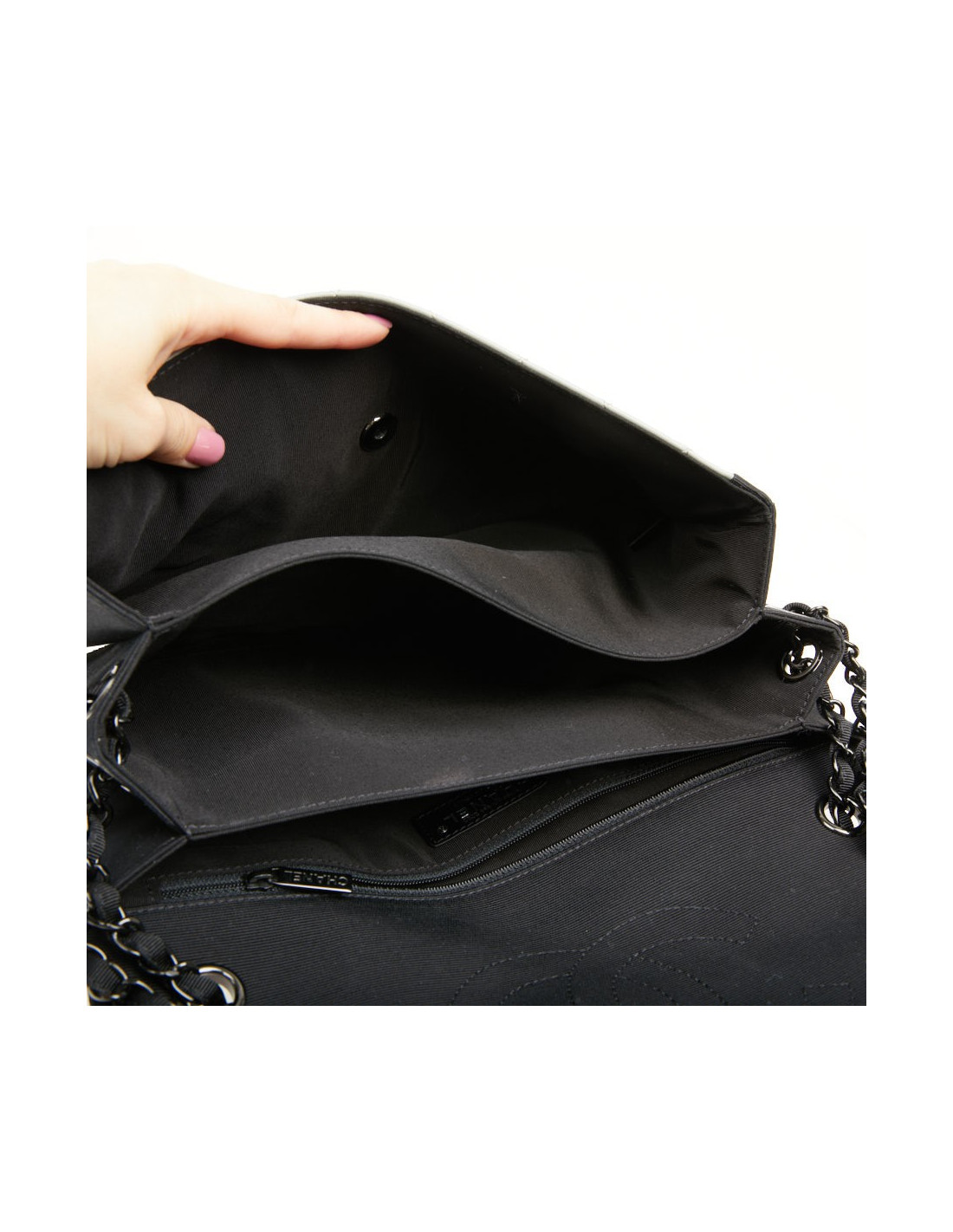 The hardware is black black "all black". It has three compartments, one of which has a pocket closed with a zip. The interior is lined in black cotton pique. Nice storage space. Collection 2015/2016, CHANEL private sales.