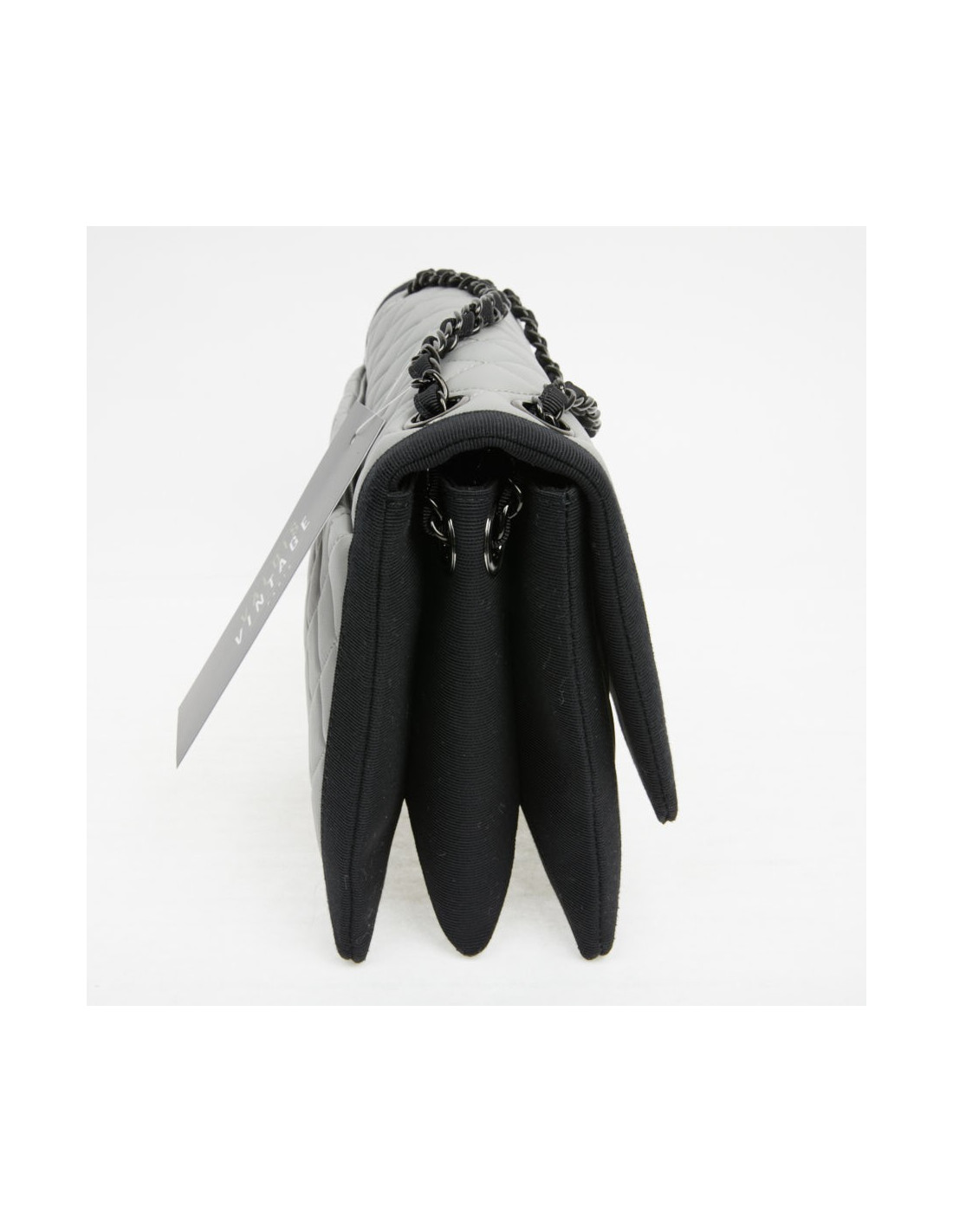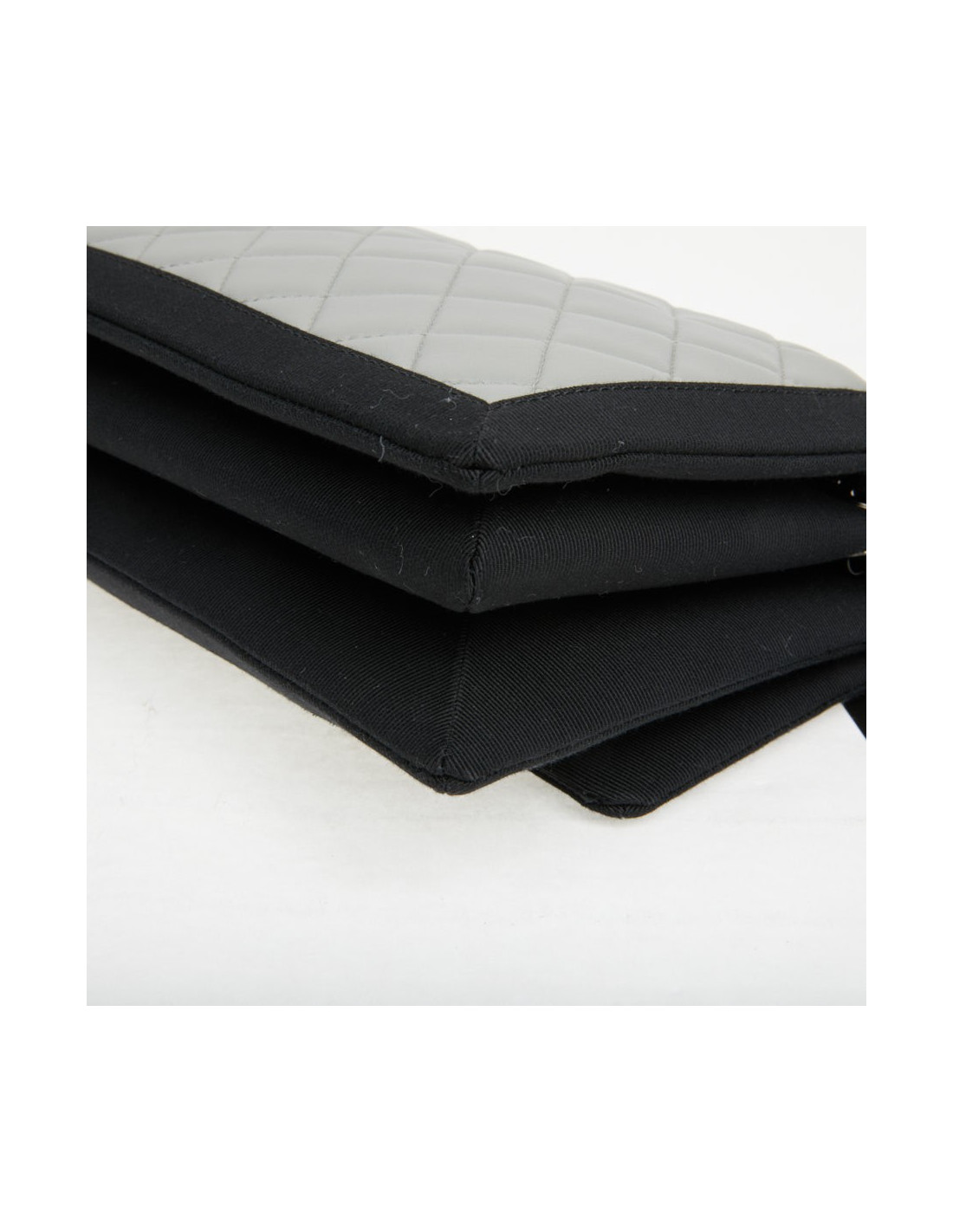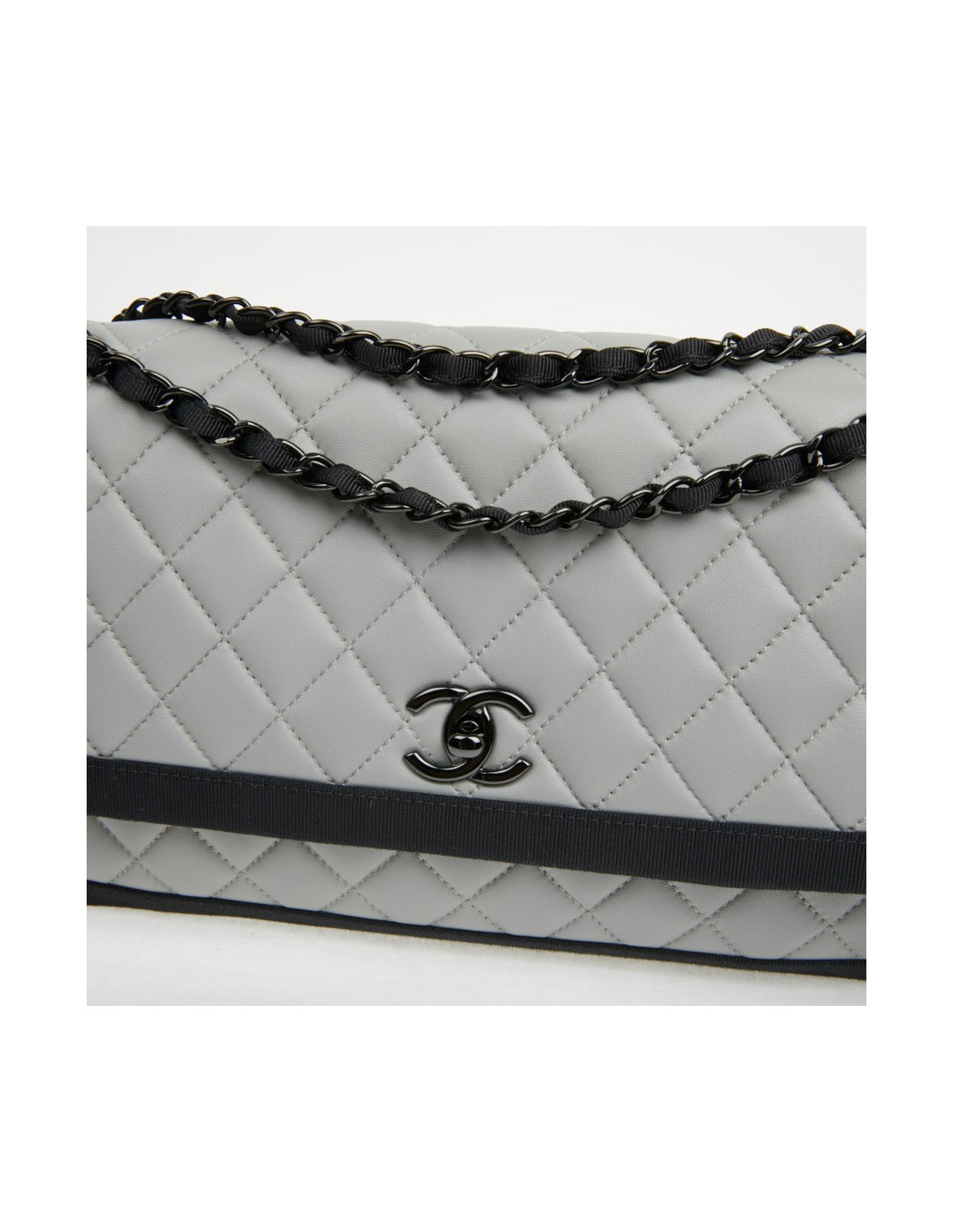 Elegant day CHANEL shoulder bag in gray lambskin trimmed with black cotton pique. It has never been worn.