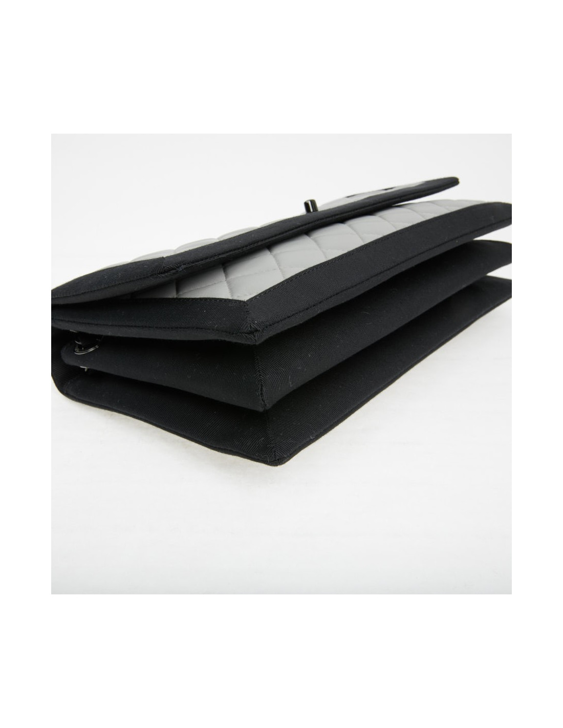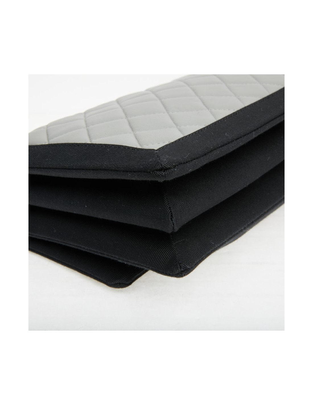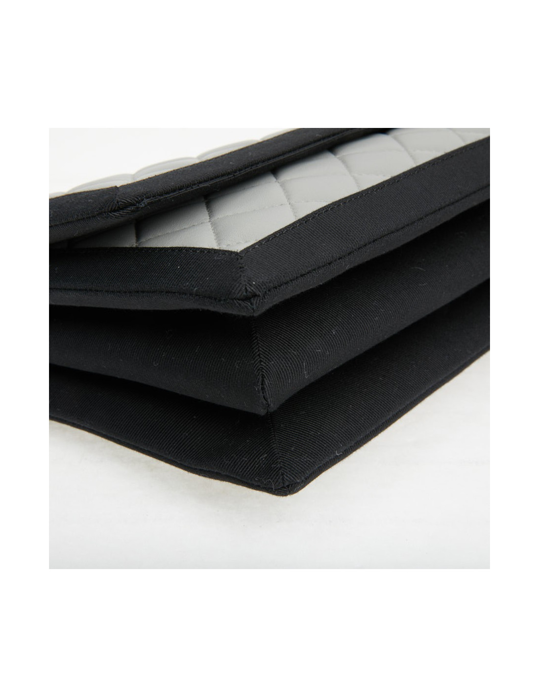 Elegant day CHANEL shoulder bag in gray lambskin trimmed with black cotton pique. It has never been worn.