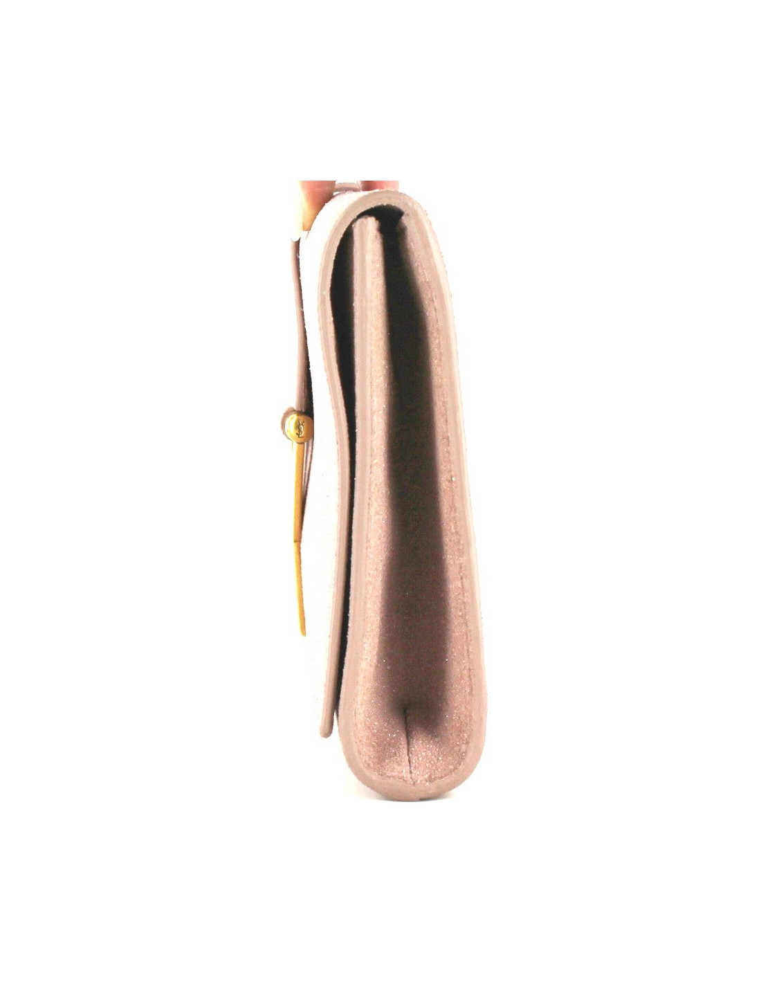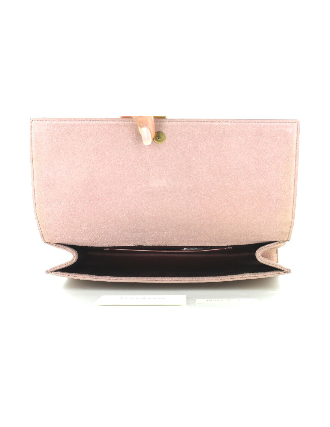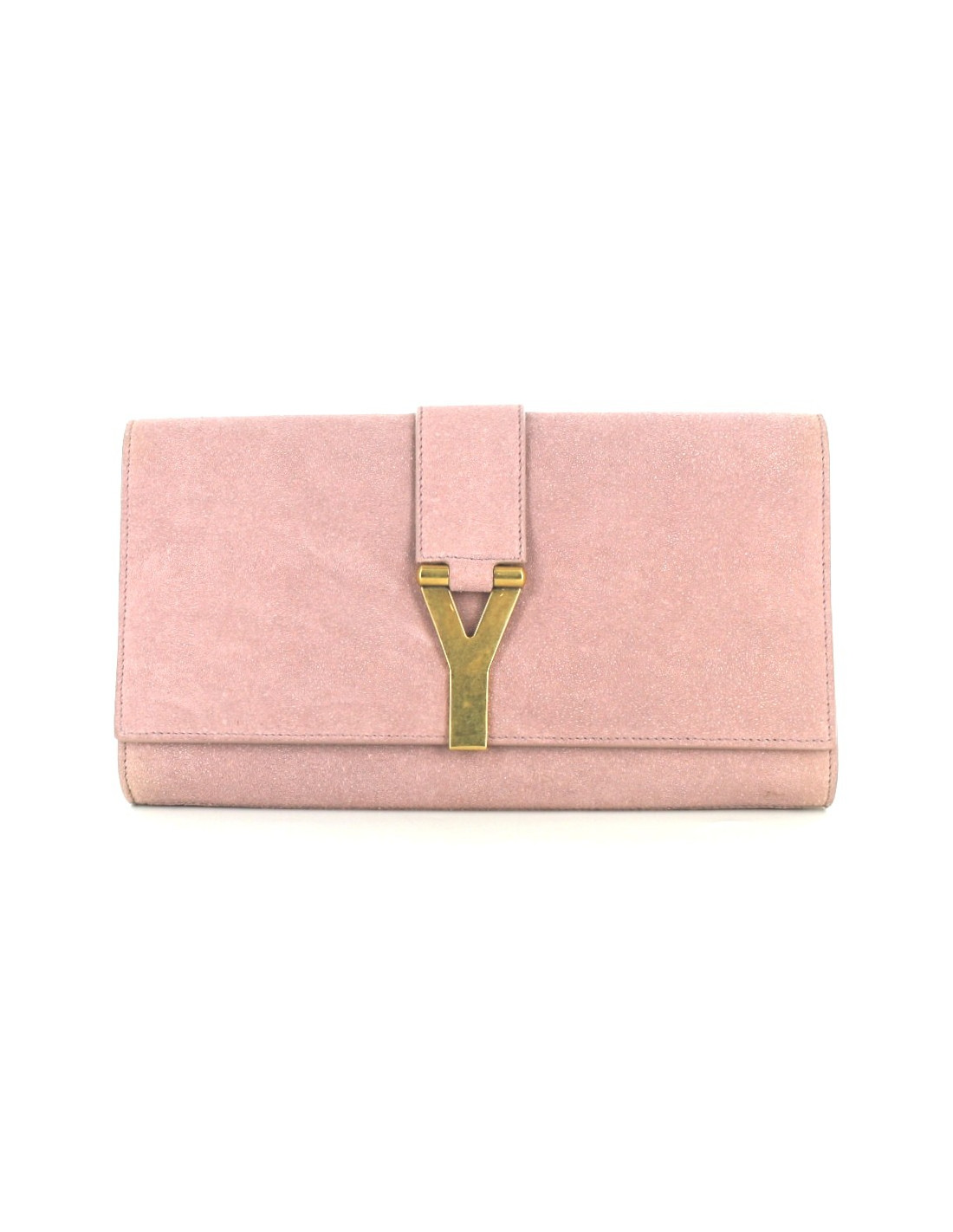 Pouch Saint Laurent, model Y golden calf to pale pink glitter aged. Very elegant, this package will go to all your formal wear with style. Jewelry in antique gilded brass. Lining silk rose. Made in Italy. Three small traces on the back of the bag. Certificate of authenticity. Sold with his dustbag.