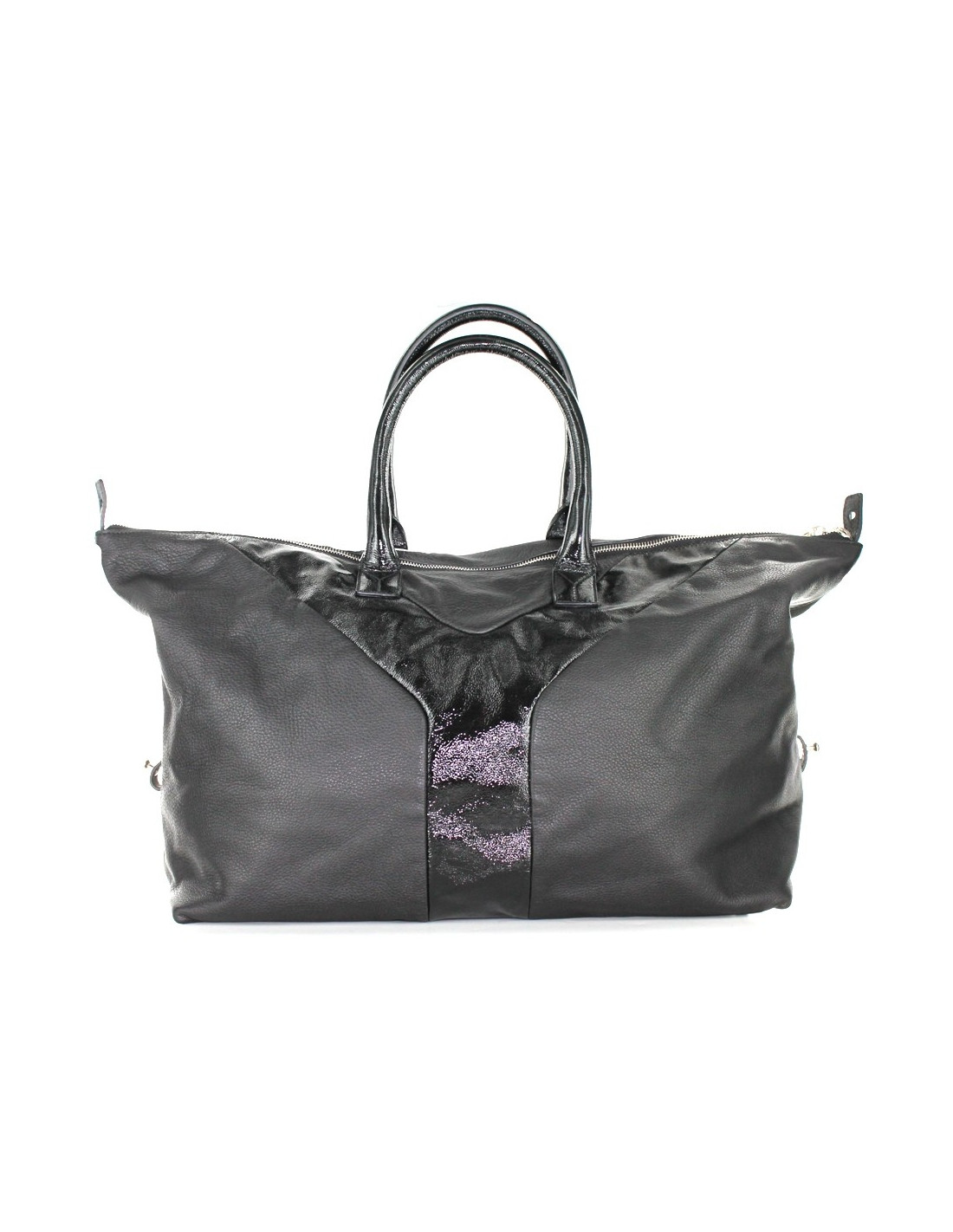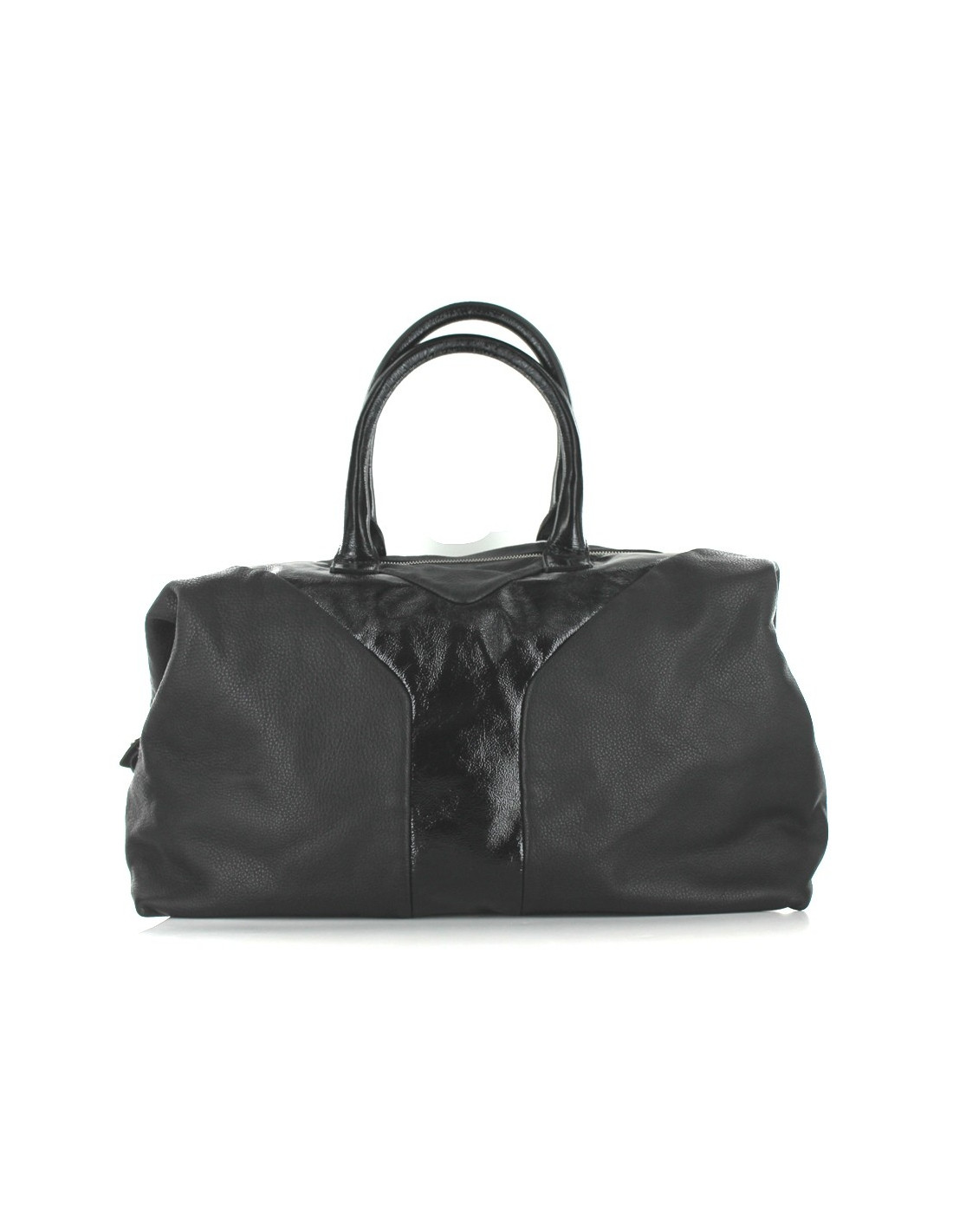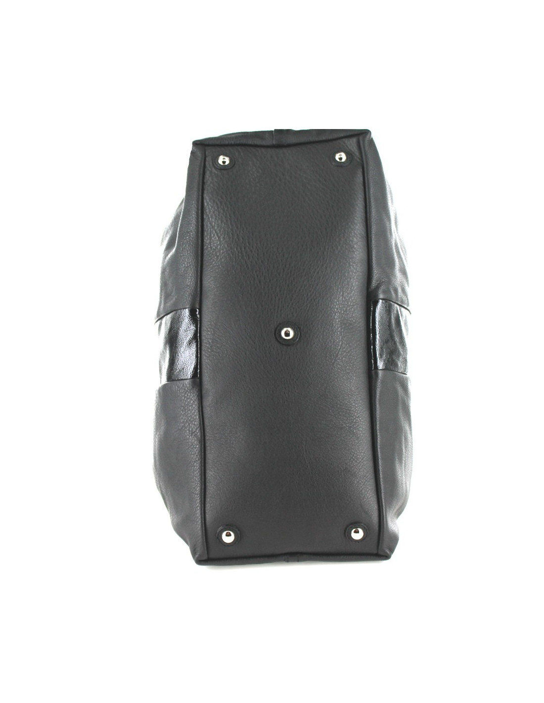 YVES SAINT LAURENT black leather bag and are varnished, model EASY, grained calf leather. Jewelry Silver brass. Can turn into two different forms. Inside a flat zipped pocket. Two flat pockets for cell phone. Interior black fabric lining. On the bottom of the bag, five pins in brass. Certificate of authenticity. Made in Italy. Serial number. Sold with its dustbag and his bag of origin.