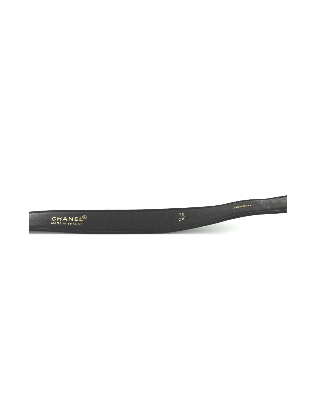 Belt-pouch CHANEL black smooth lambskin and Golden jewellery. This belt is a must for all fans of the Couture.Fermeture House by hook. Made in France.the small very functional pouch will allow you to carry your mobile phone or your wallet. Three notches adjustment length. Acronym CC metal gold on the cover. Made in France.