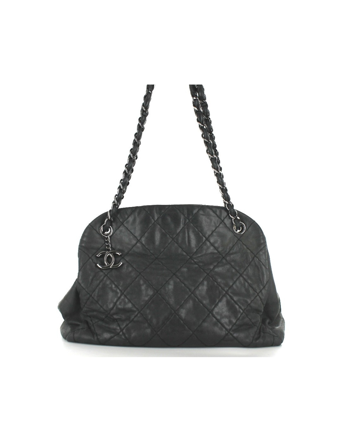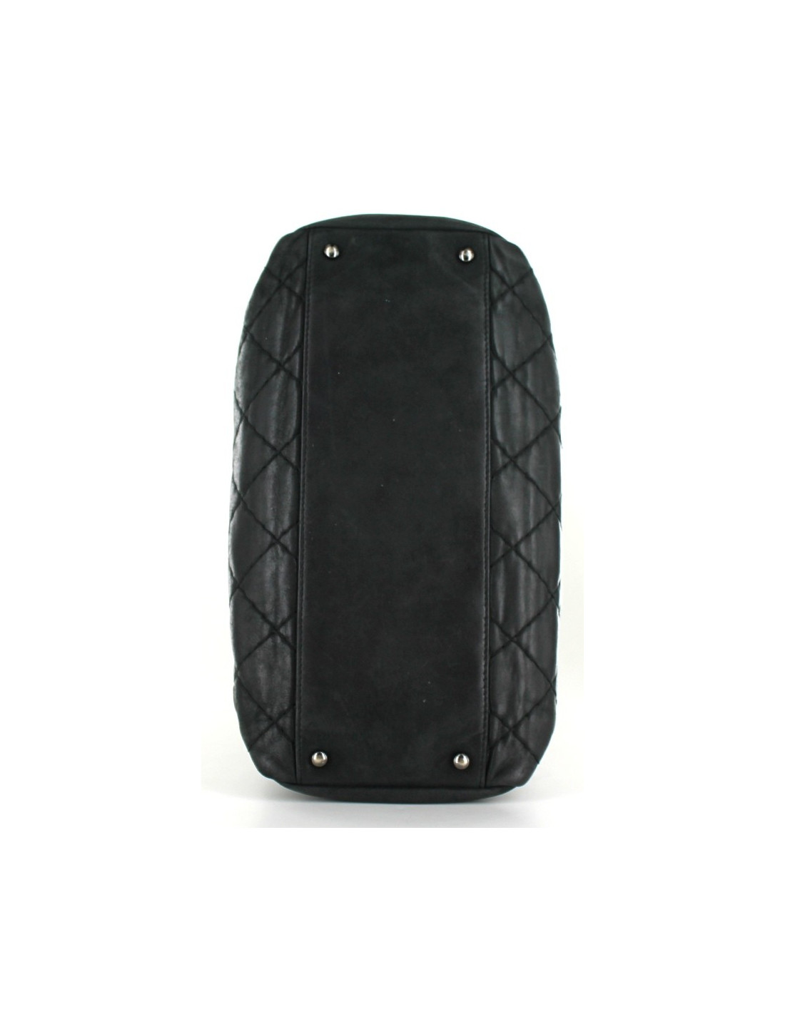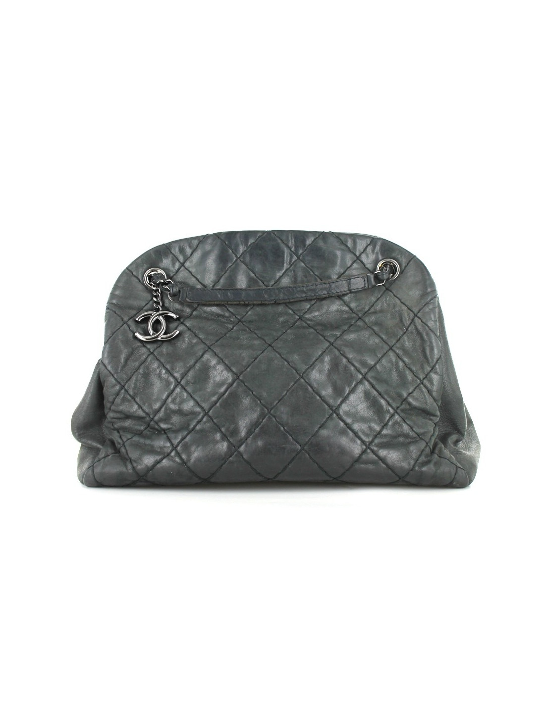 CHANEL leather bag grey anthracite Iridescent Quilted. Double handles that allows to be worn shoulder or hand. Three large compartments with one zippered. Inside, zipped, flat pocket and two flat pockets. Handles damaged including a torn inside. Magnetic snap closure. Flange with snap hook to attach your wallet or your keys. On the bottom of the bag, four dots in silver metal. Marks and scratches from wear. Hologram 14..., year 2011. Sold with his dustbag. Made in Italy.