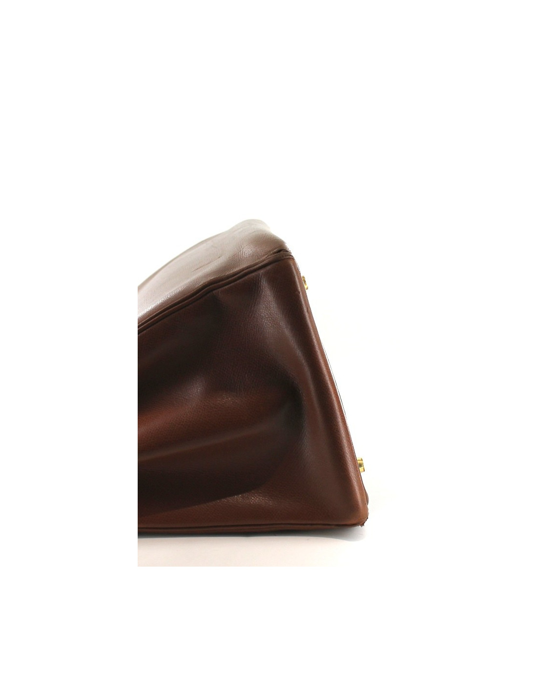 BIRKIN 35 in Epsom leather, tobacco color, Golden jewelry. Unbleached topstitching. Letter G, year 2003. On the bottom of the bag, four dots Golden. Angles slightly damaged by wear and tear, including two torn by a few millimetres. Marks and scratches from wear. Inside, a large flat pocket and one large Pocket zip. Sold with its padlocks, the keys, his Bell and his dustbag. Made in France.