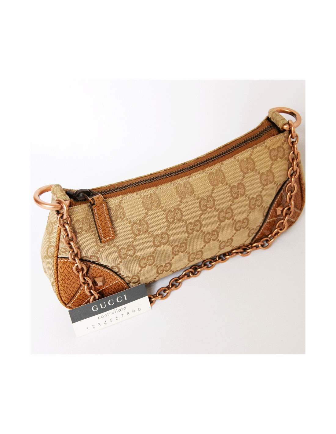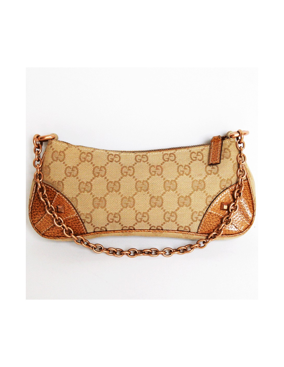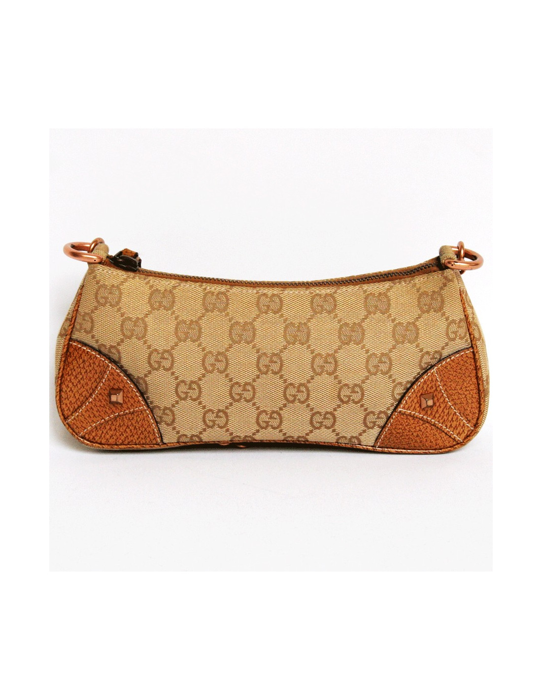 Mini bag GUCCI monogrammee Brown canvas. At each corner of the bag, a piece of leather with a nail.