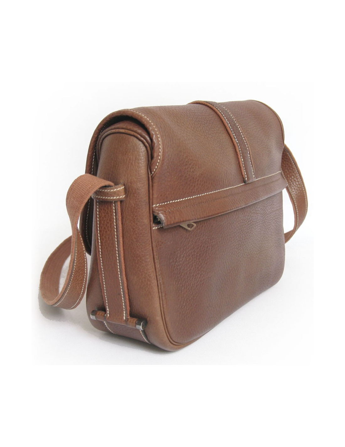 Bag brown leather Hermès ' Noumea'. Thanks to its shoulder strap shoulder carry. White topstitching. Closure with snap on flap. Brown suede inner lining. Two patch pockets. In very good condition.