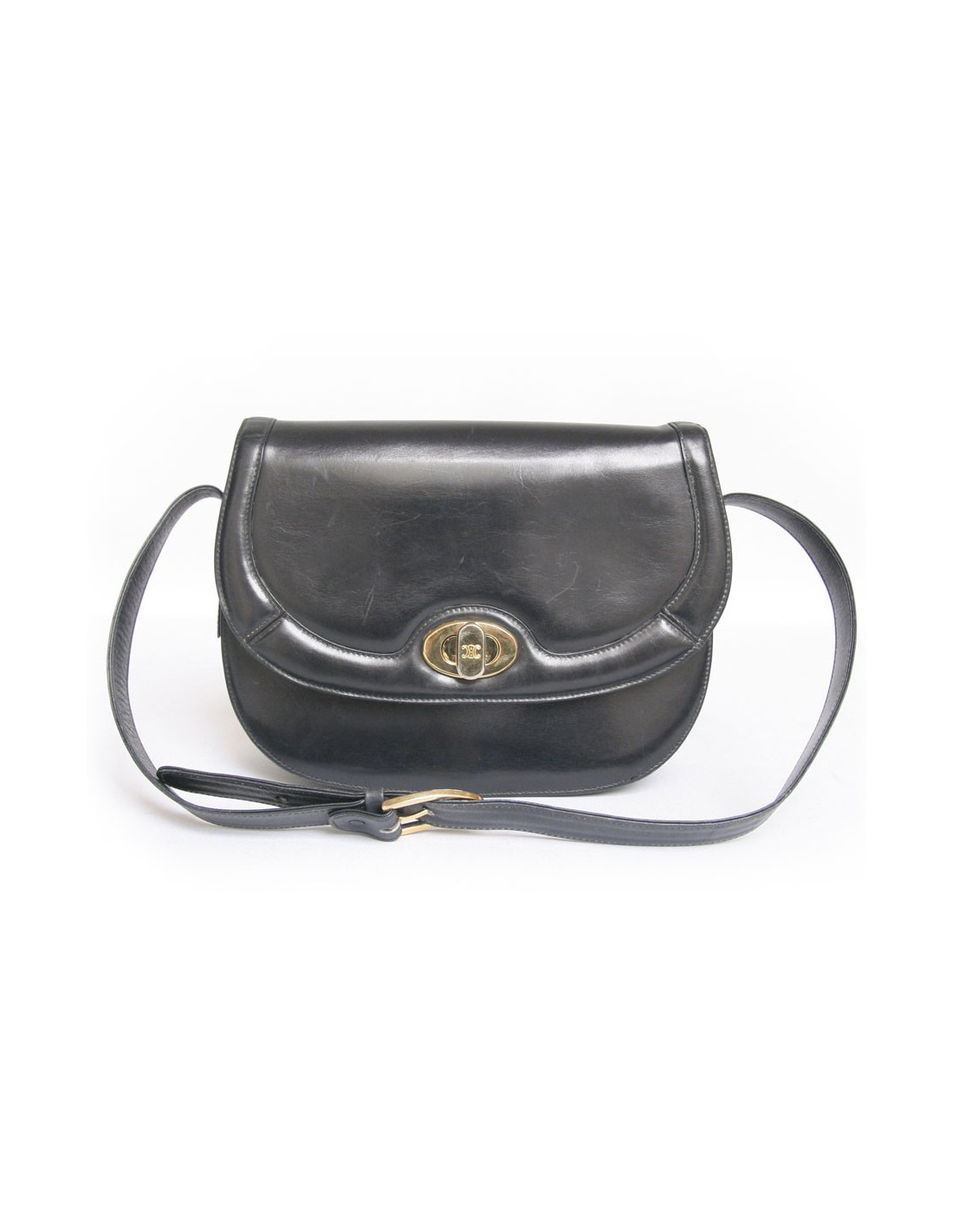 Blue smooth leather bag Céline Navy vintage. The jewelry is gold metal. He wears shoulder using an adjustable shoulder strap. Inside, two pockets and a patch pocket. State vintage. Light scratches on the front of the bag.