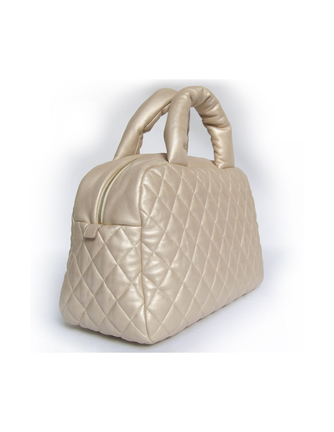 Beautiful Coco Cocoon bag in gilded quilted leather. Double zipper closure. Doubel Cove leather. A zipped to the front of the bag. Bordeaux inner lining with a zipped pocket. Hologramme: 13... New condition. Never worn. Just a slight little visible tachetres. The tabs are still under plastic.
