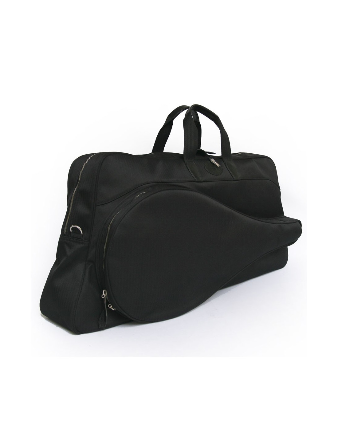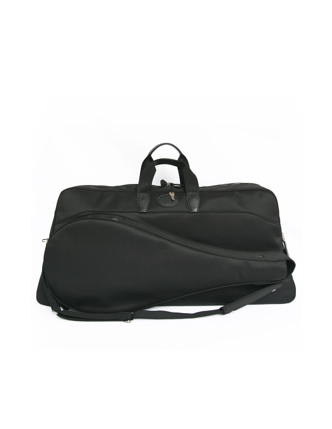 It can be worn by hand using two handles in leather and black nylon as well as a shoulder strap. Padlocks and keys included.