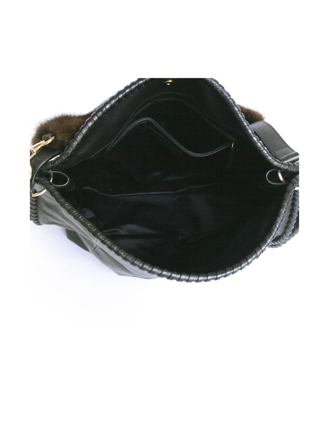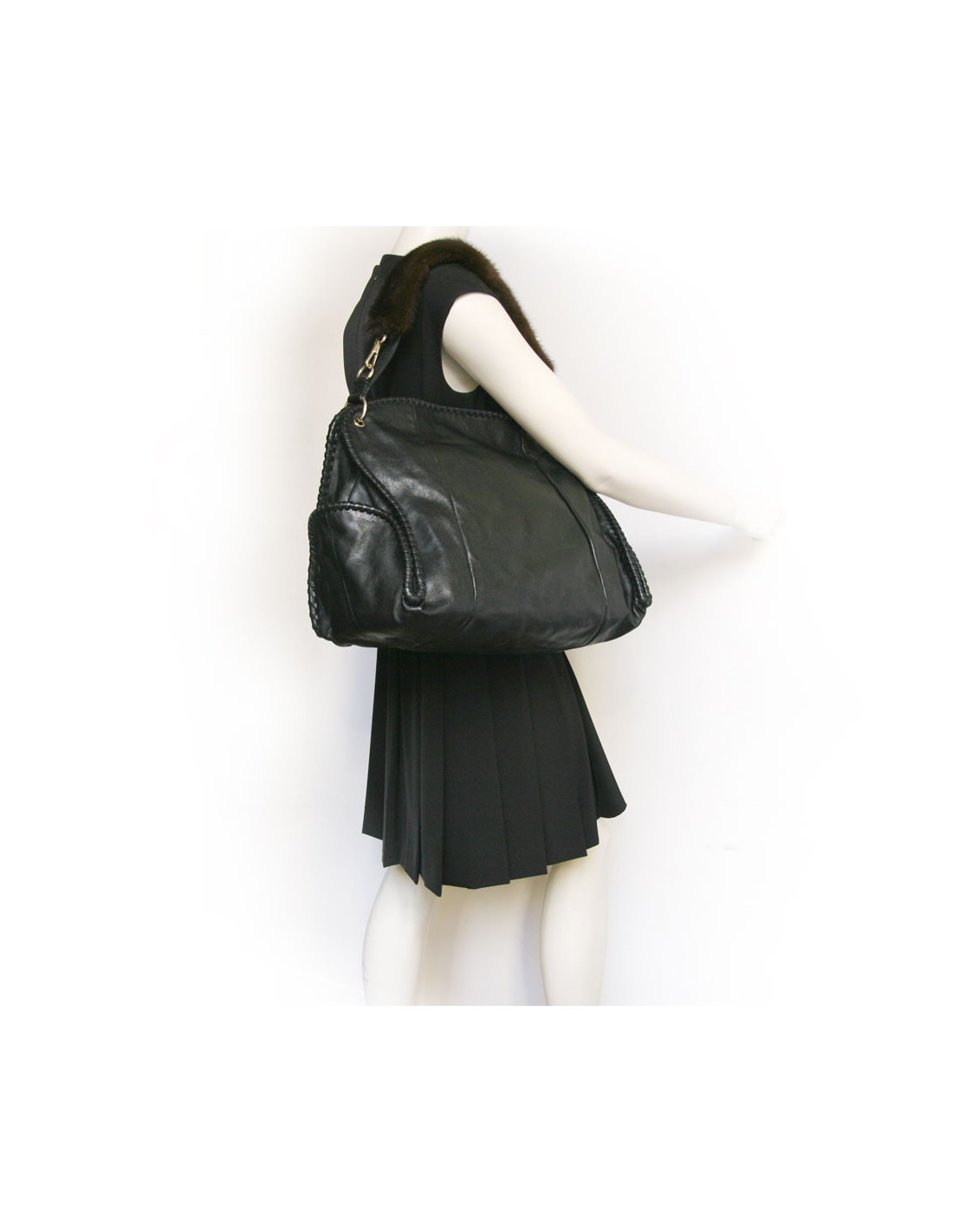 The House Yves Saint Laurent in black leather and mink tote bag. Very convenient for everyday life because it can contain all your accessories. All the way round the bag is leather braid. A snap closure. The Interior is black satin with a large zipped pocket. The hardware is gold metal. He wears shoulder using a shoulder strap. It is covered with a removable mink skin if desired. In very good condition.