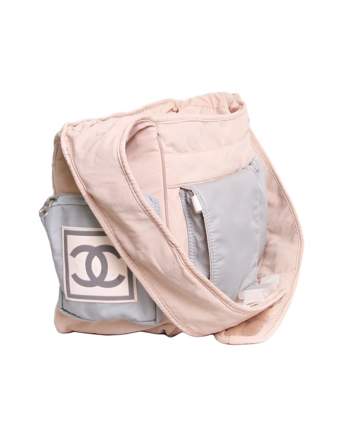 Content, can wear shoulder or cross body effortlessly with a soft material and a padded shoulder strap. The bag contains multiple pockets inside (storage for cards, daily papers, large and small objects), two pockets on the front and one on the side, decorated with the logo "double c" on a plastic plate. Zipped.