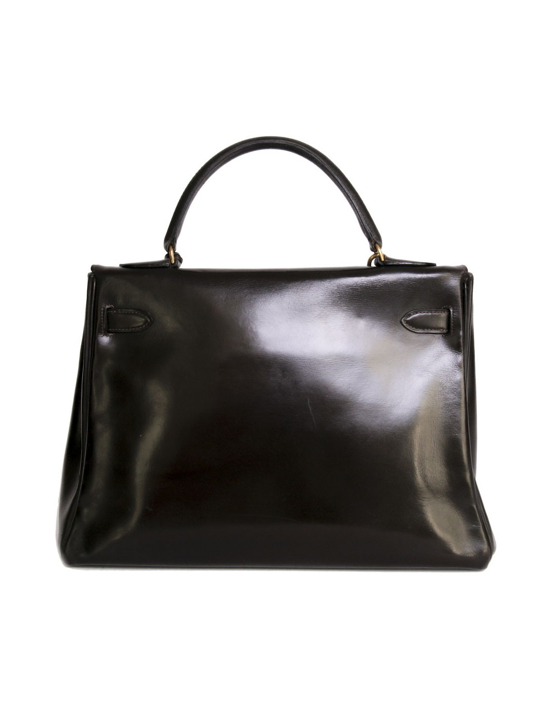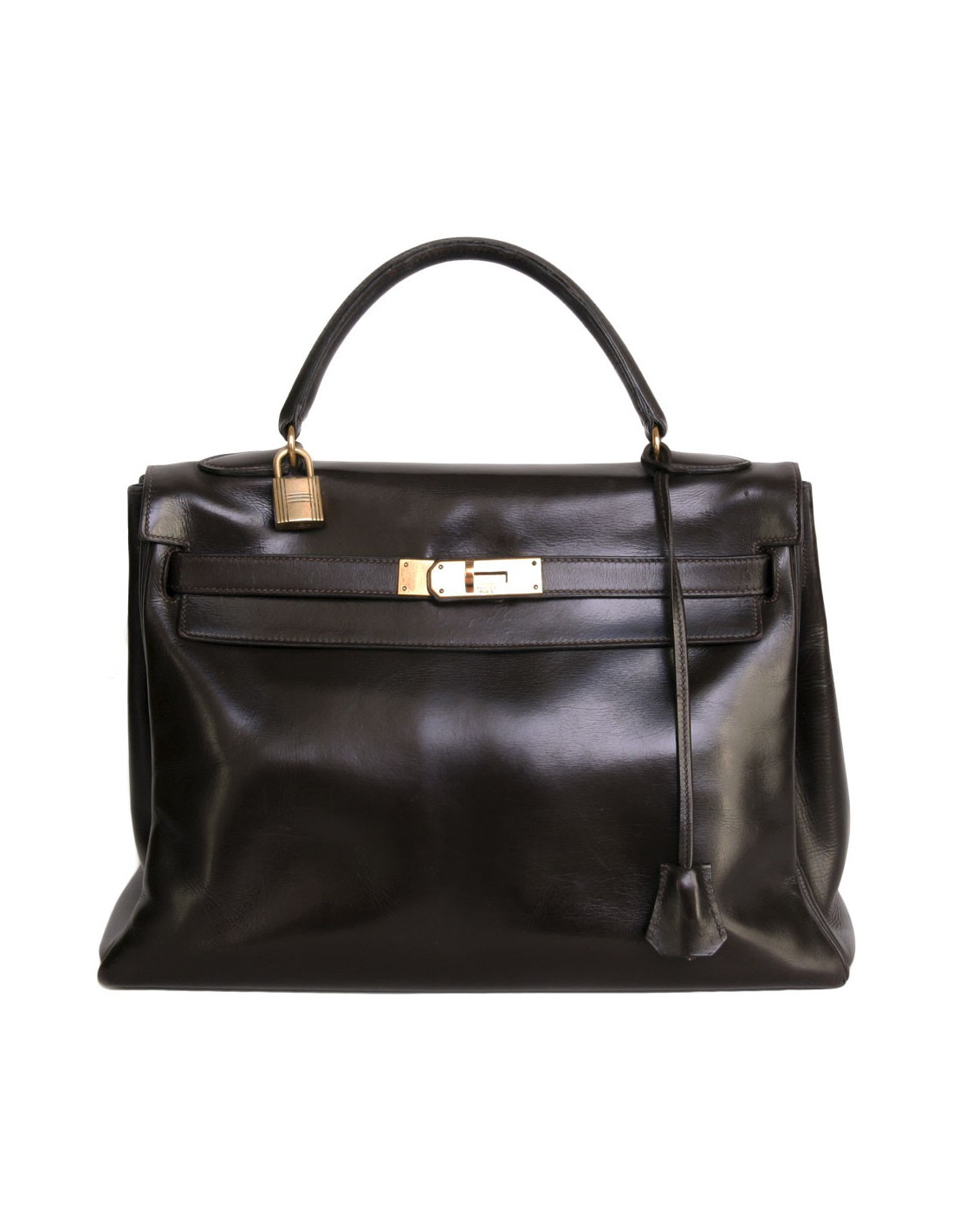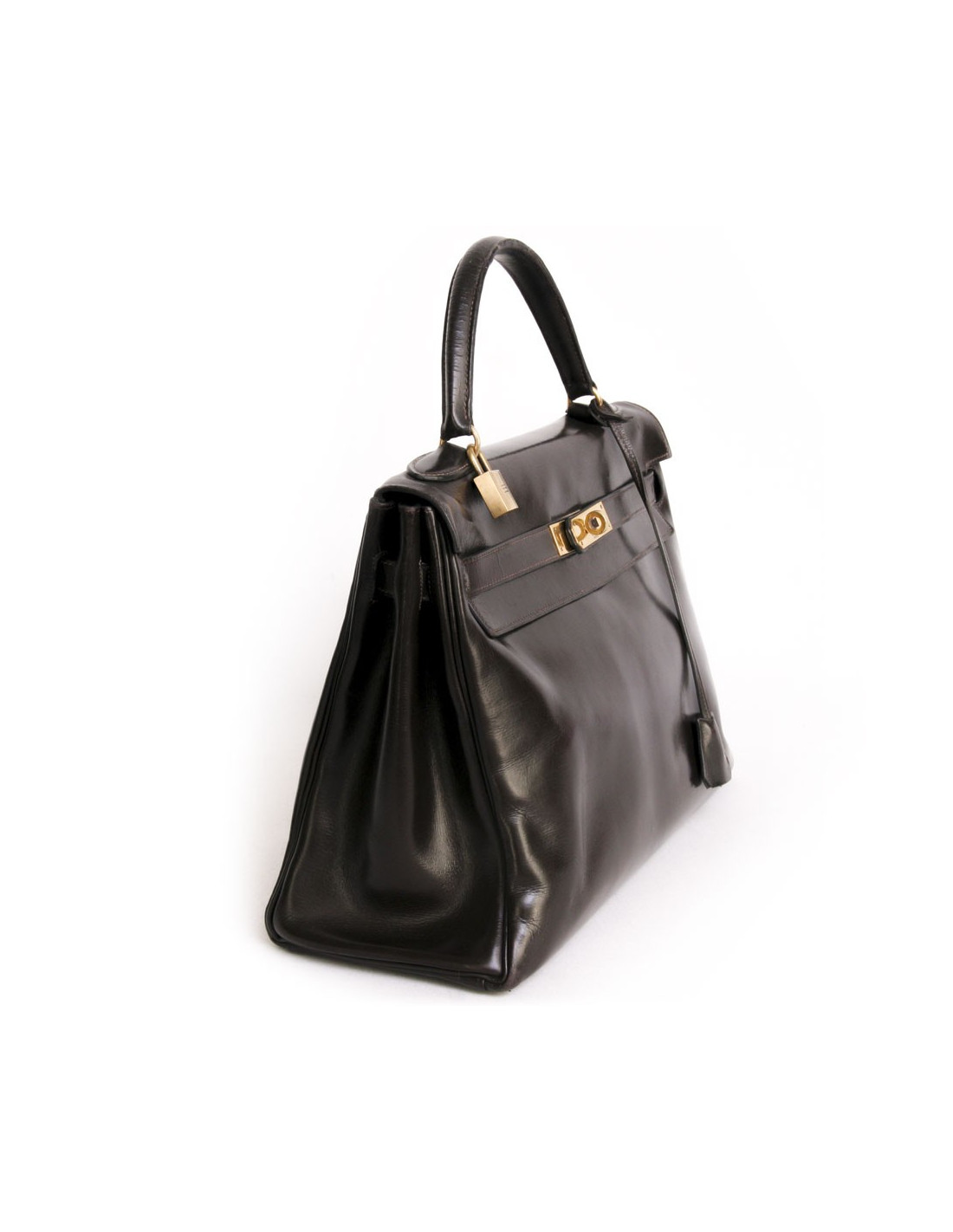 Chocolate brown soft box Hermès Vintage leather bag, letter G in a round, in very good condition.