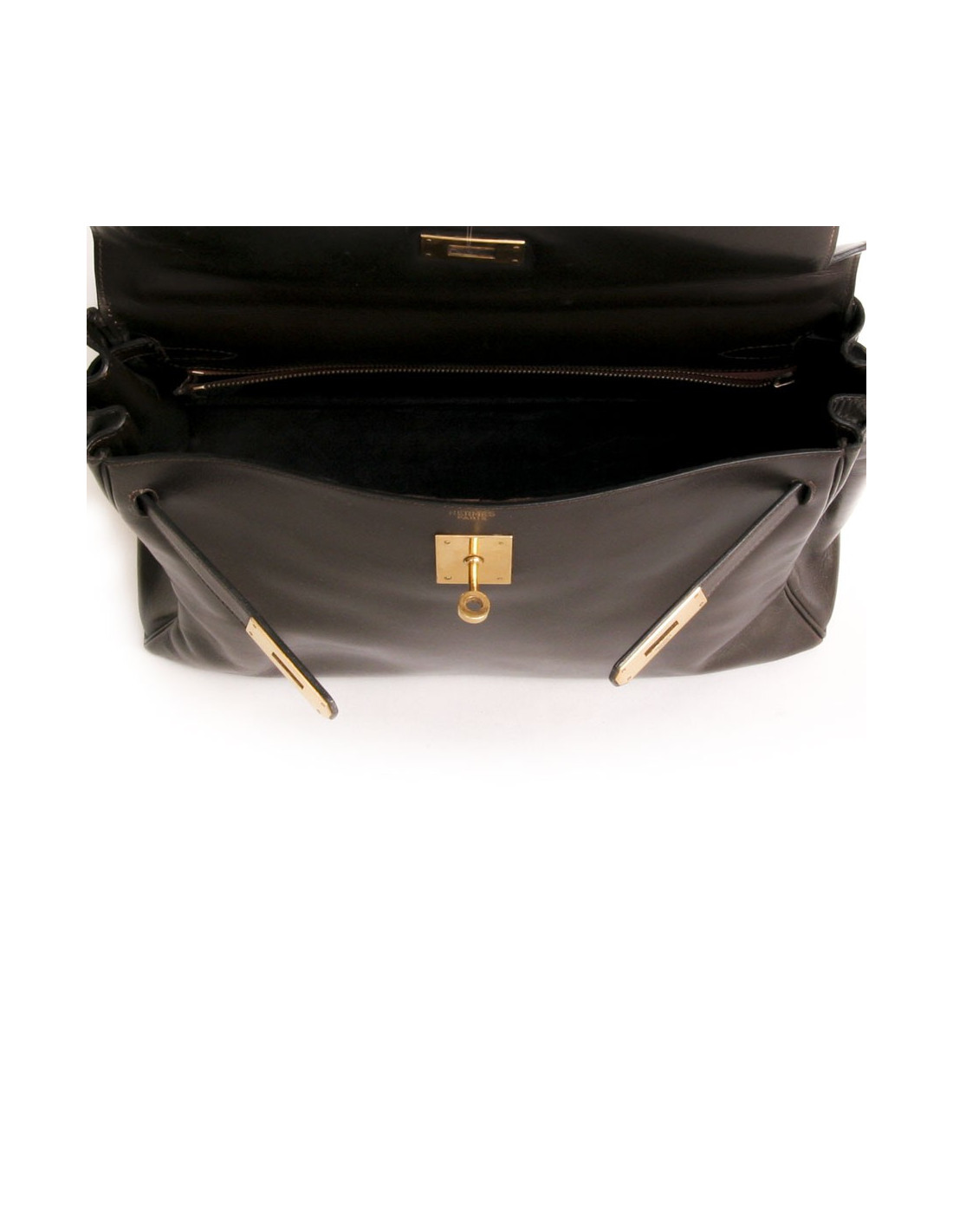 This bag has its attributes: lock, zipper, Bell and key, and all of the jewelry is gold plated brass (micro scratches from use). Very nice patina, Interior leather includes three pockets including one zipped. Some signs of wear on the Cove (invisible when door). Double inside pocket rambling about 2 centimeters.