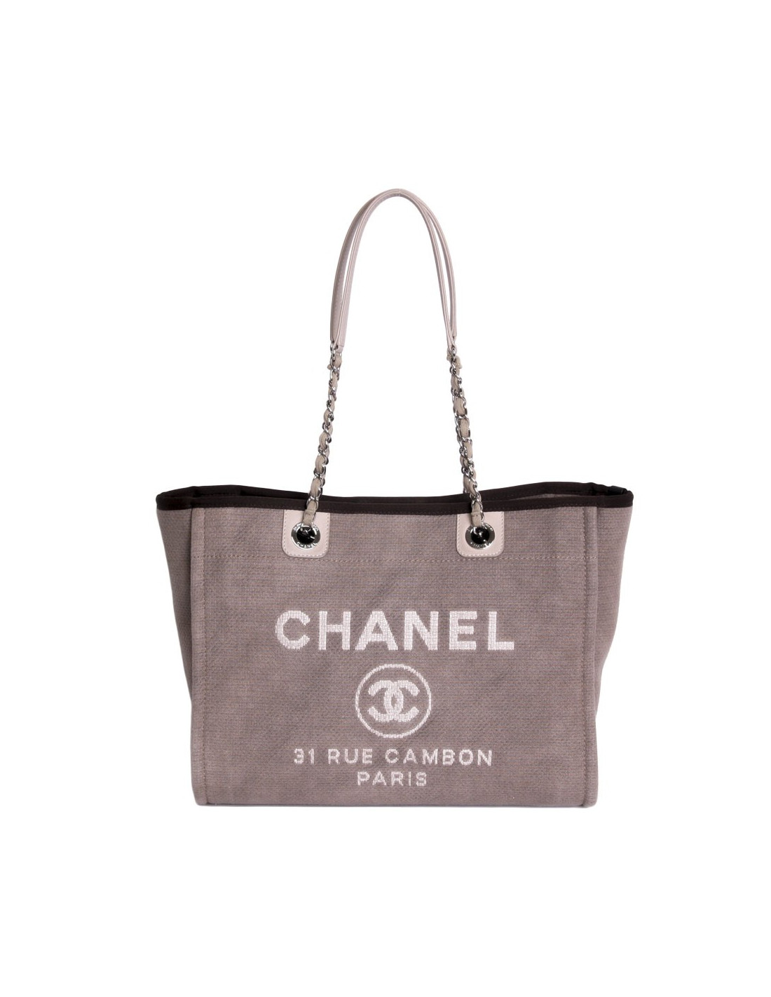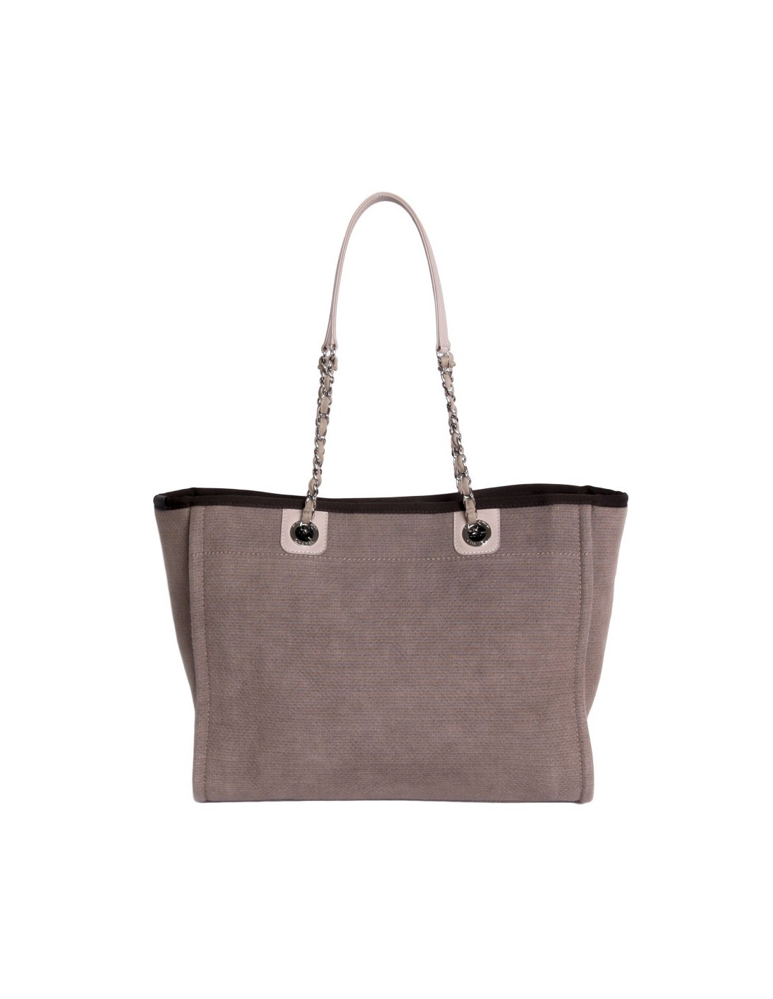 Sand colors and the material rigid Tote is perfect for the summer. Its leather handle allows a door to the comfortable shoulder while their base chain and leather recalls the signing of the House of CHANEL. The bag closes with a button pressure inside, discreet, its silky canvas Interior consists of two pockets with a zippered, jewelry palladiee.