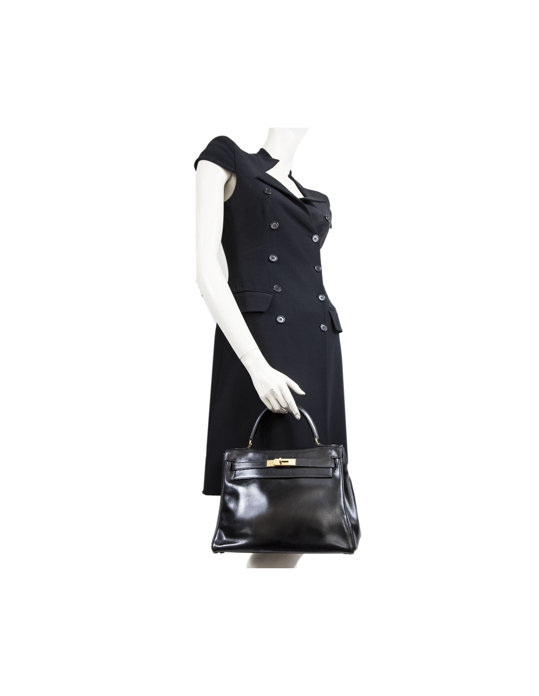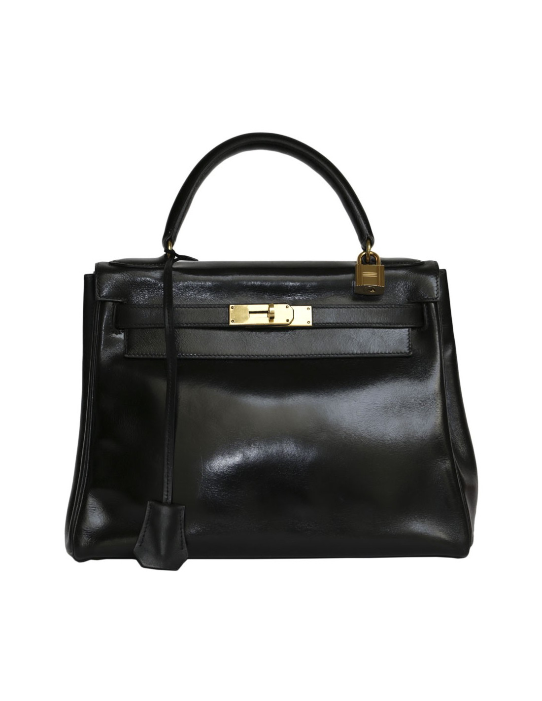 28 leather black box Vintage HERMES kelly bag
