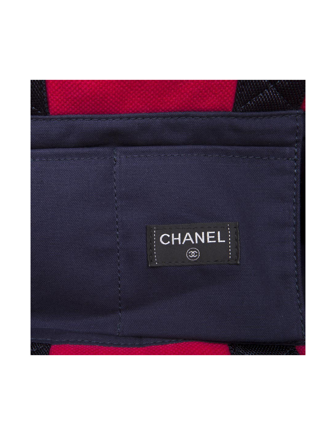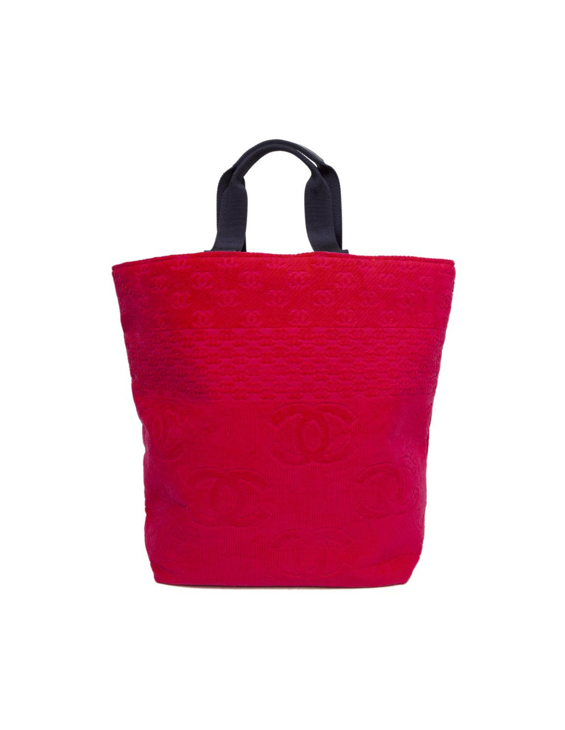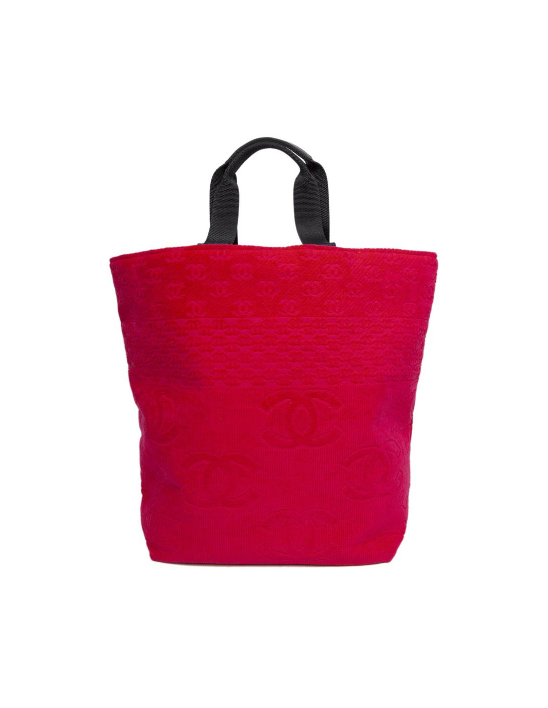 The House of Chanel beach bag and towel to sponge fushia. The Interior is black cloth with two small pockets. The two handles are nylon and leather. In very good condition.