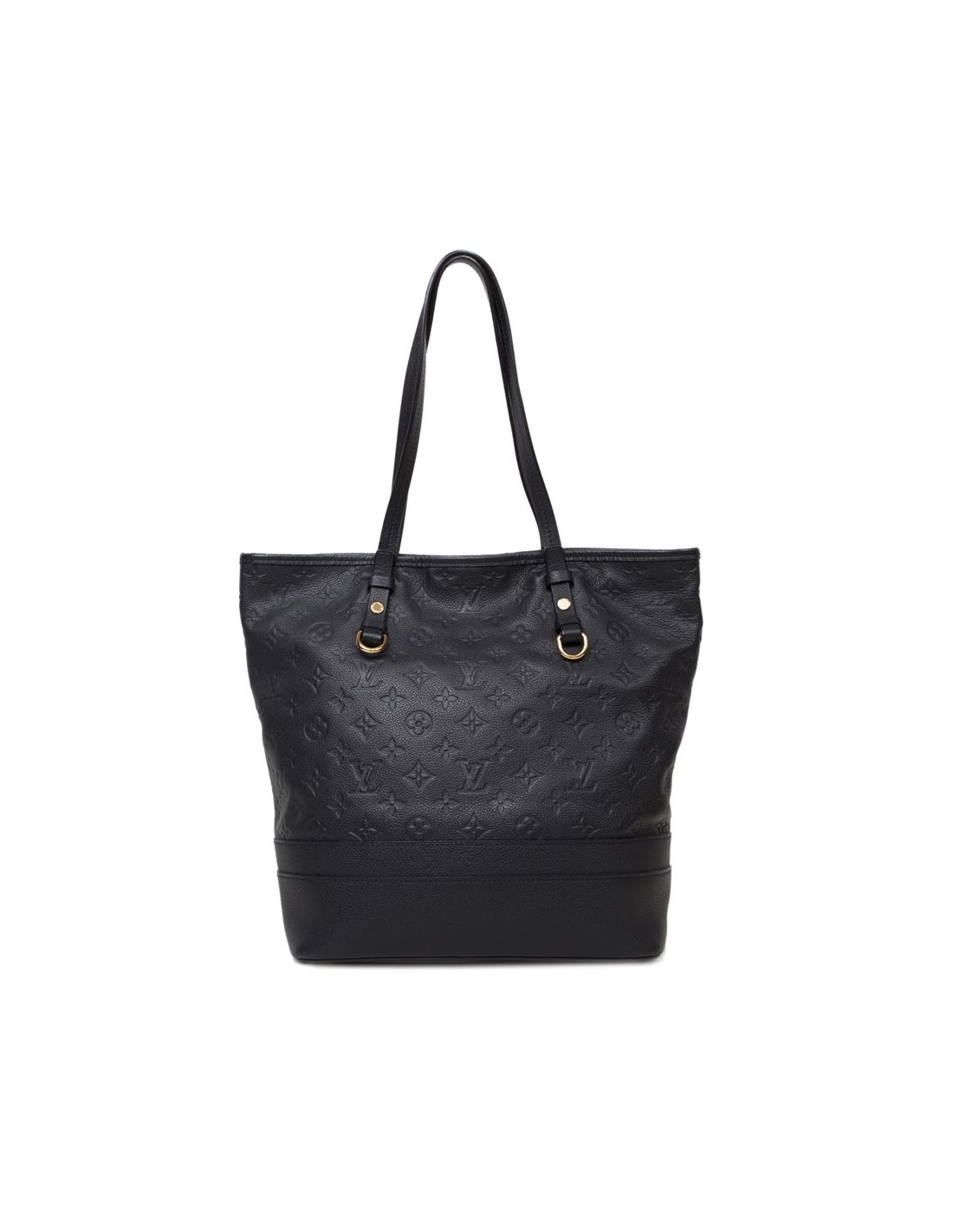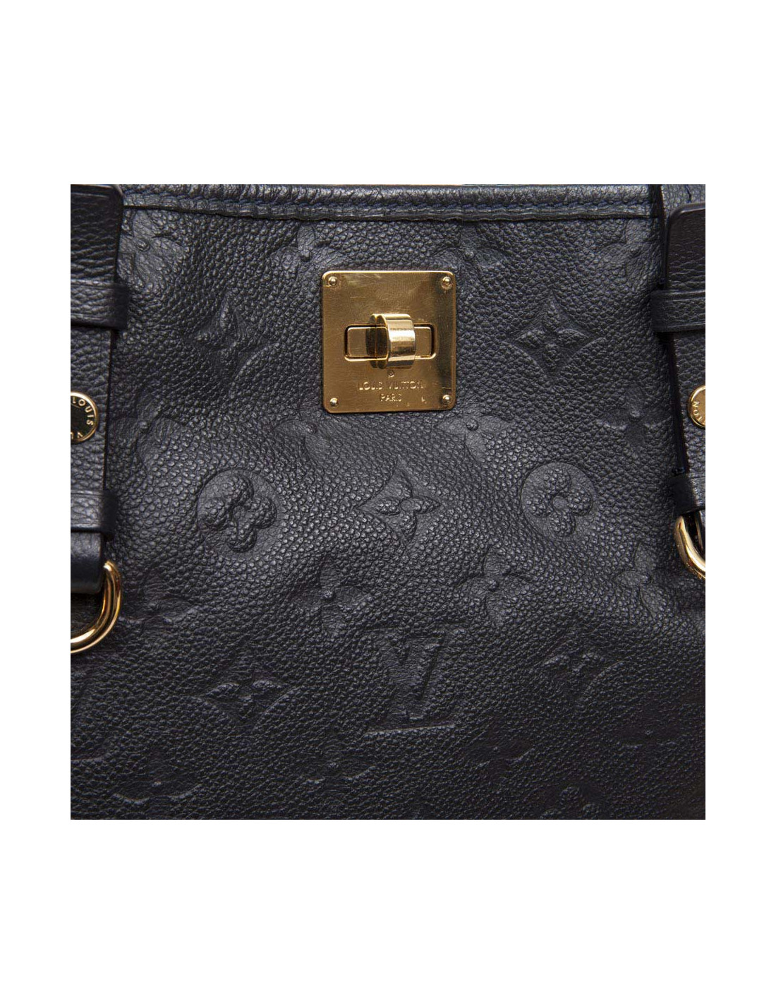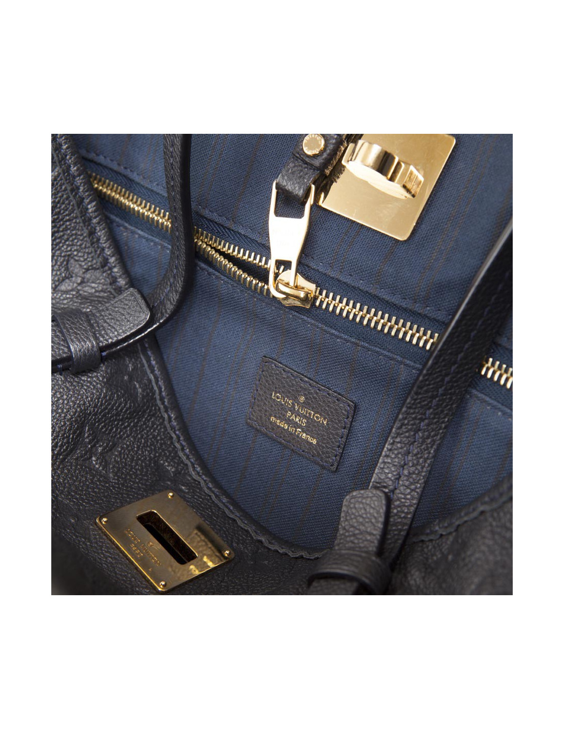 The Maison Louis Vuitton leather embossed grain blue monogram bag. Golden metal parts. The Interior is blue textile scratched with a zipped pocket and two locations for smartphones. In very good condition. The corners are slightly weathered practically invisible. Serial number label: V15111 in the inside pocket. He is in the shoulder: 51 cm