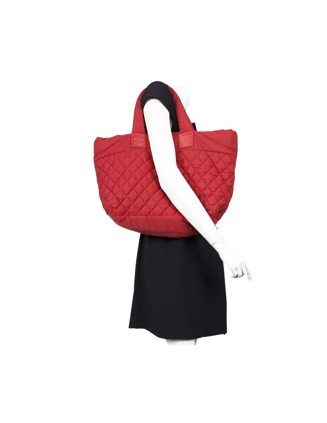 Great bag 'Cocoon' of the House of Chanel in parachute fabric quilted and smooth leather red GM. Zipped. The jewelry is silver metal. The Interior is in khaki canvas with a zipped pocket. Hologram: 1360... and card authentiticite. In very good condition.