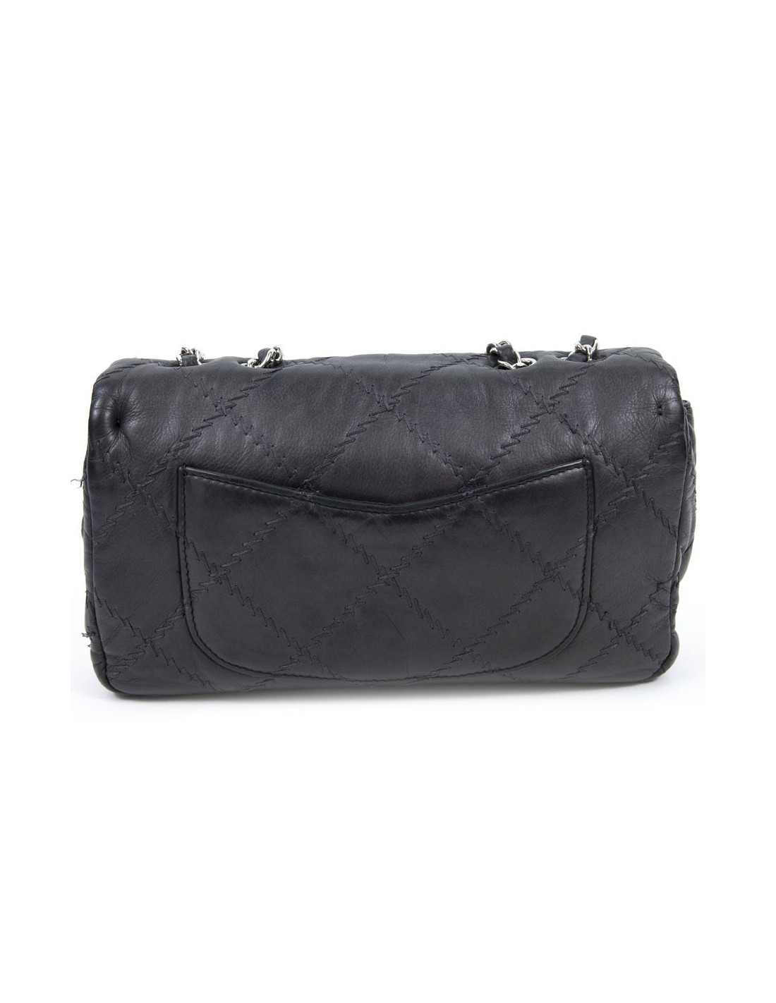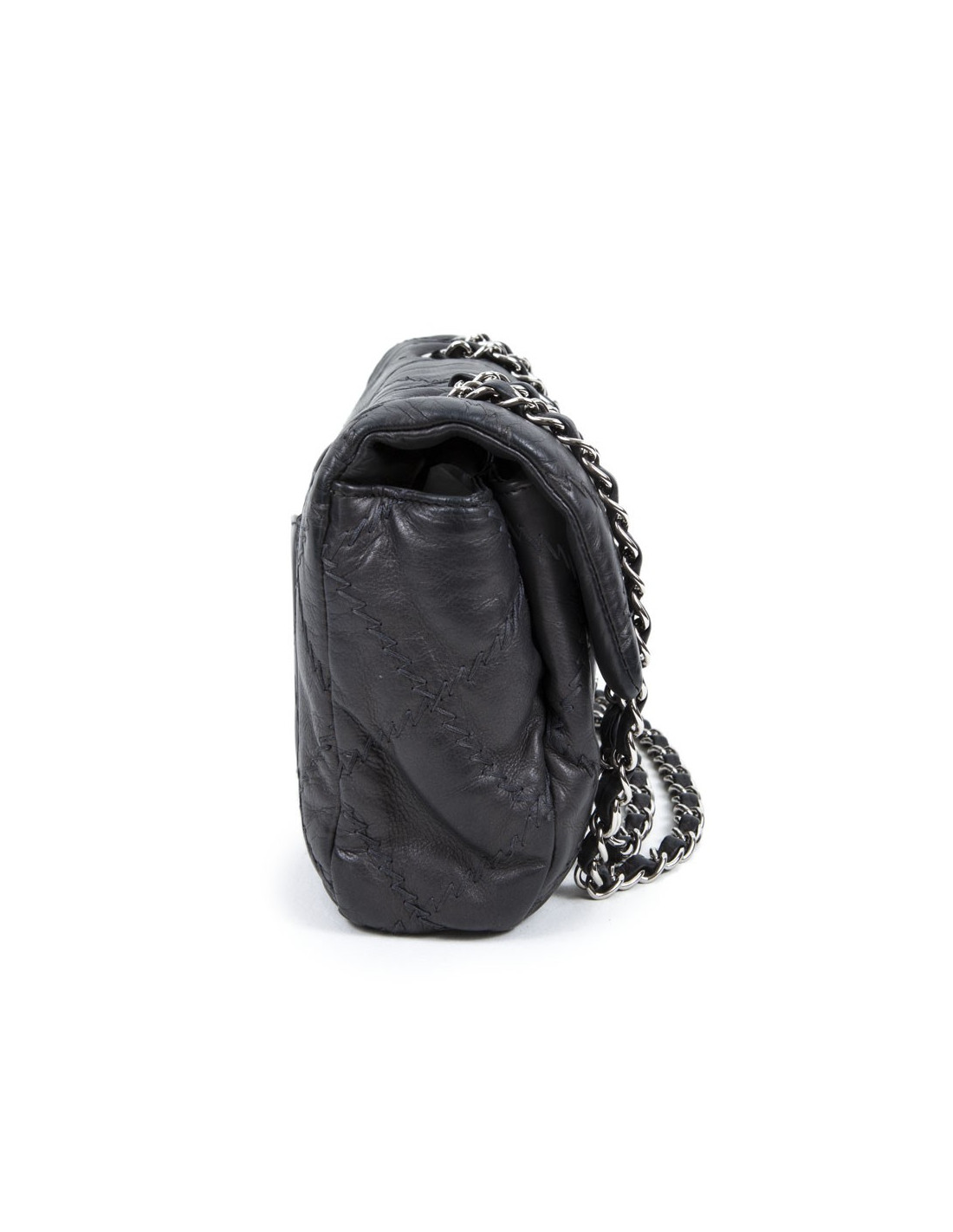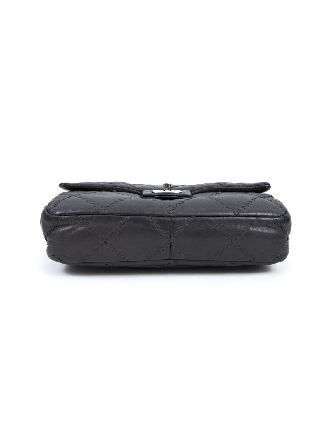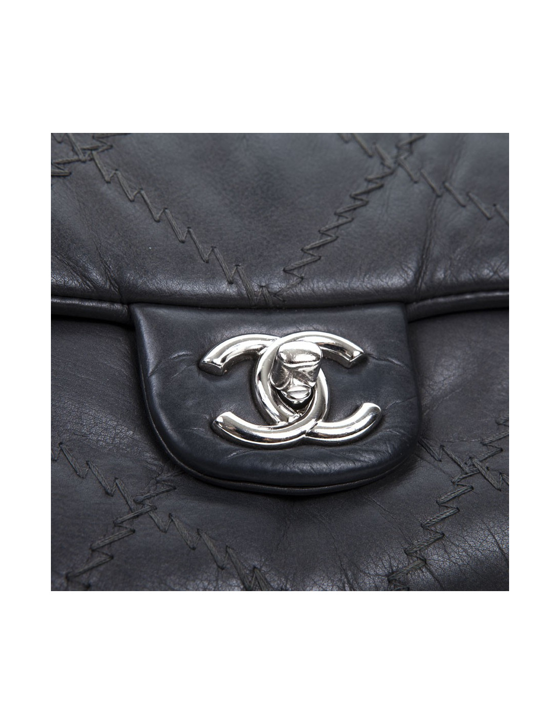Grey leather bag slate for the House of Chanel. Clasp 'CC'. The jewelry is silver metal. The Interior is brown satin. It consists of two compartments with a zippered pocket. There is also a flat rear pocket.