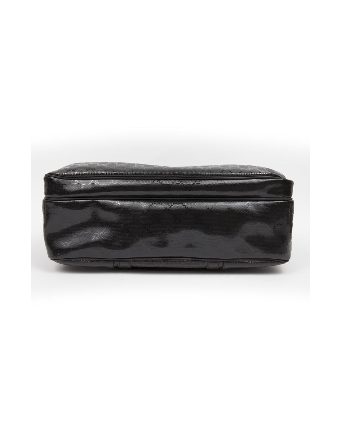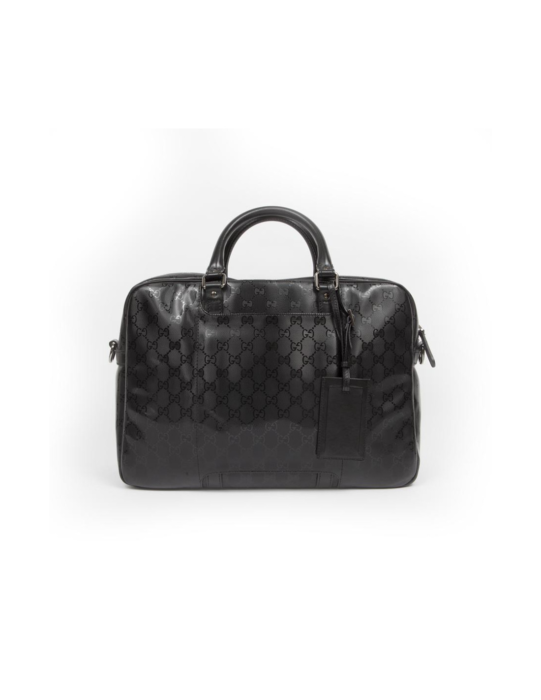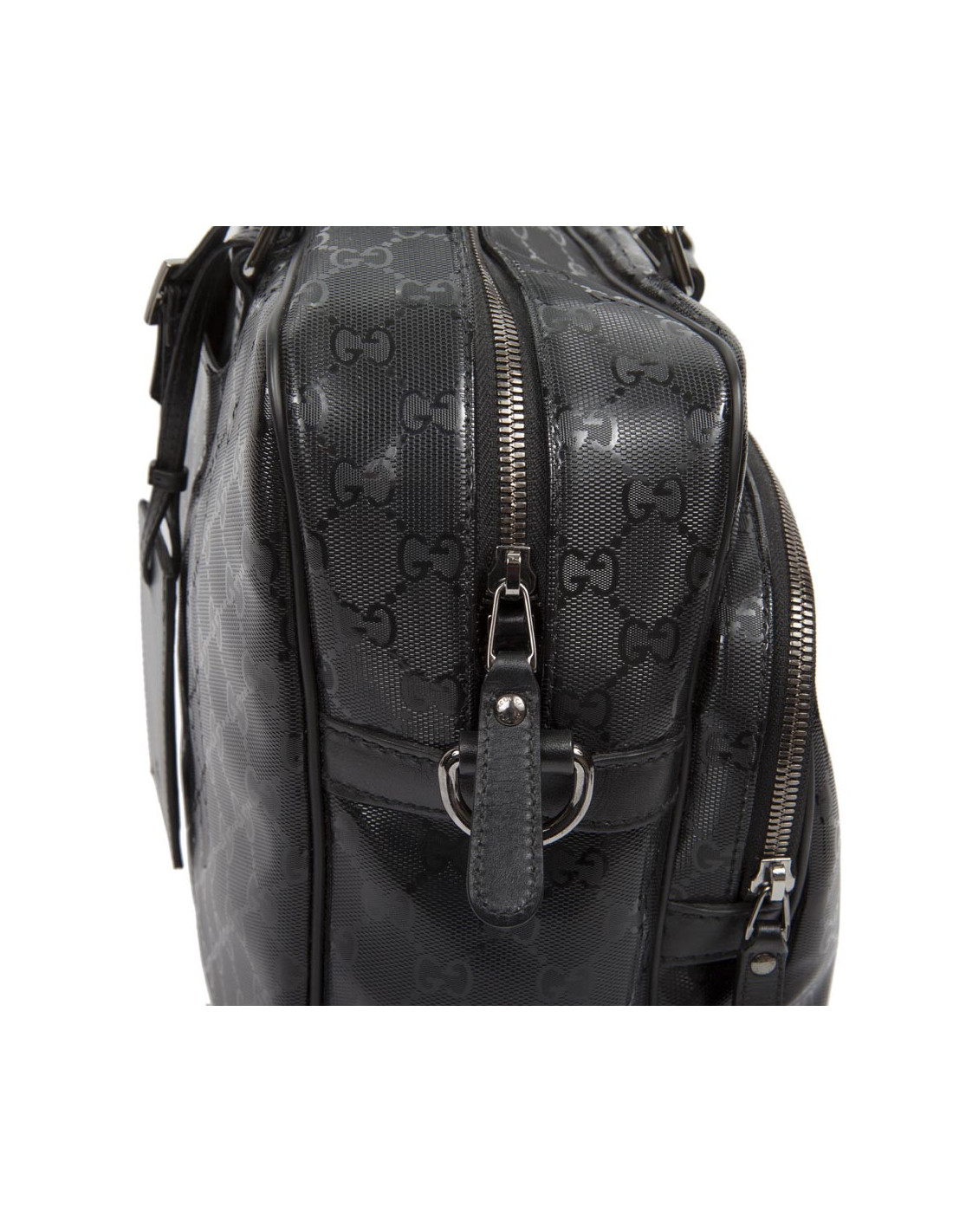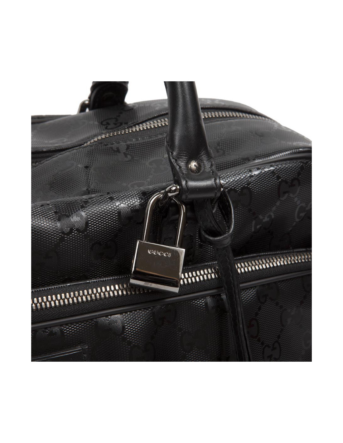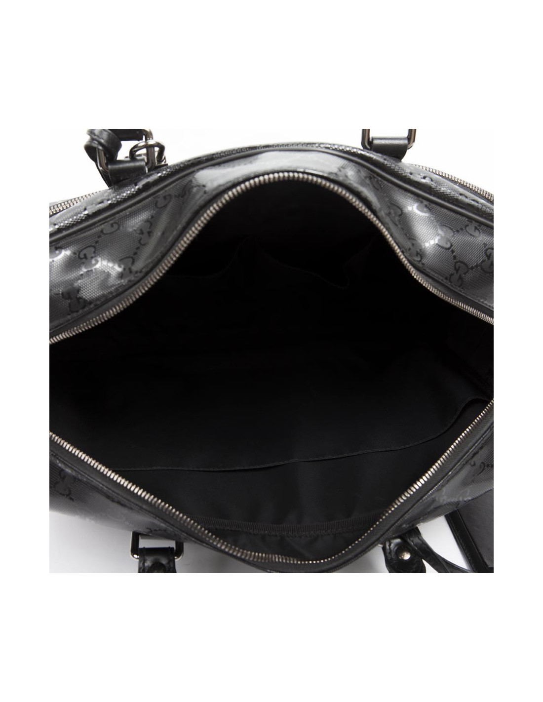 Shiny black Gucci canvas monogram House tote bag. The jewelry is silver metal. Zipped. He is doing by hand and shoulder using a doubled removable leather strap (1.20 cm). The two handles are made of black leather.