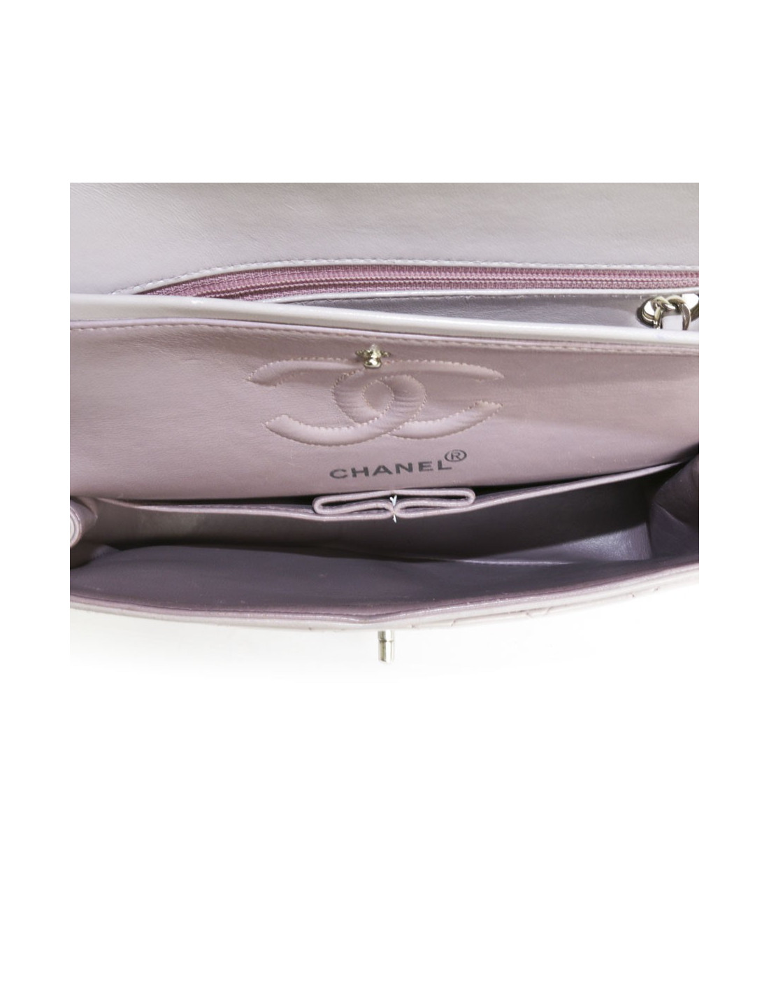 'Timeless' of Parma the House of Chanel quilted lamb leather bag. Clasp 'CC'. Silver jewelry. Double flap. Hologram: 5273... No authenticity card. the Interior is in purple lambskin darker with 3 plated pockets. In very good condition. A few light scratches on the inside, but very little visible.