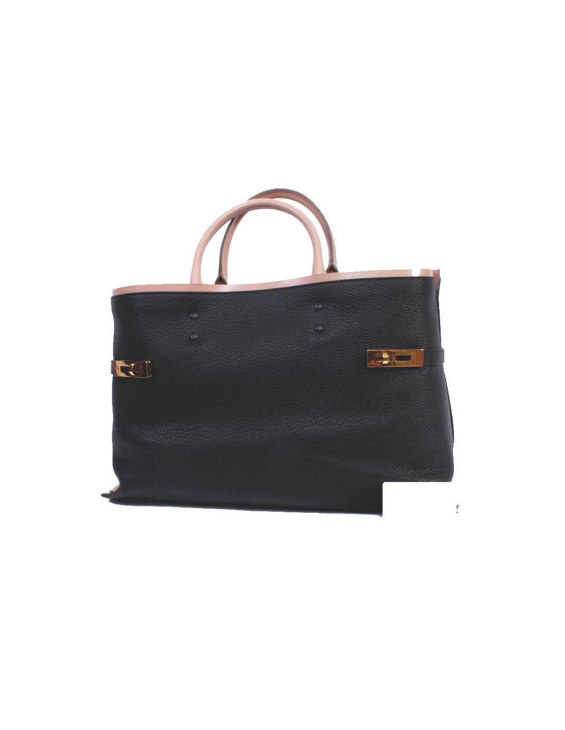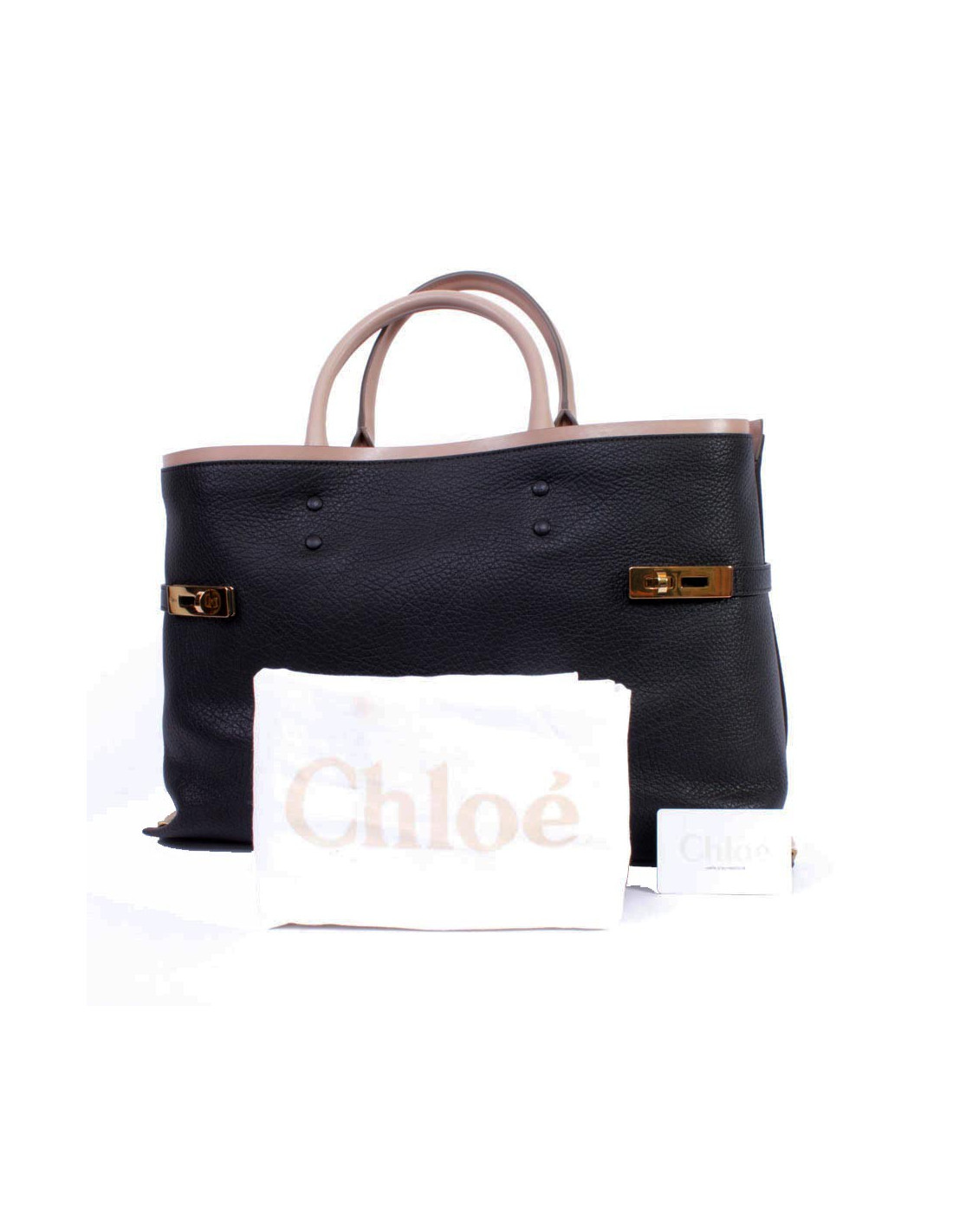 Chloe Leather black hand-held bag model "Charlotte", grain leather black and beige.