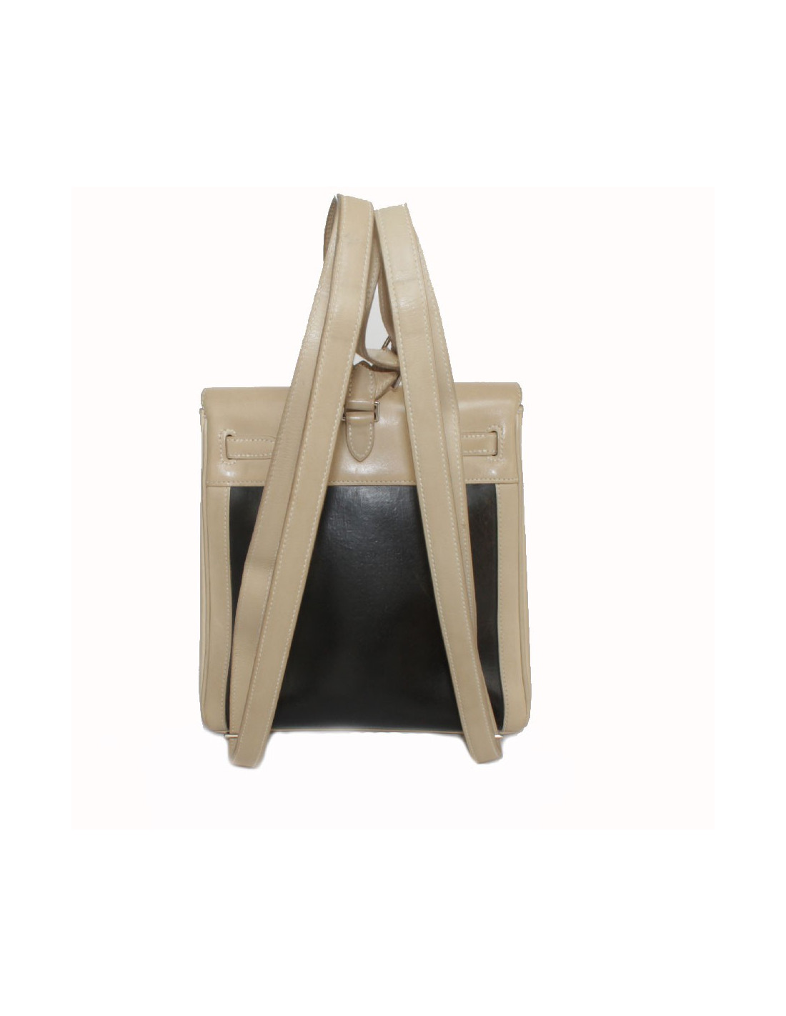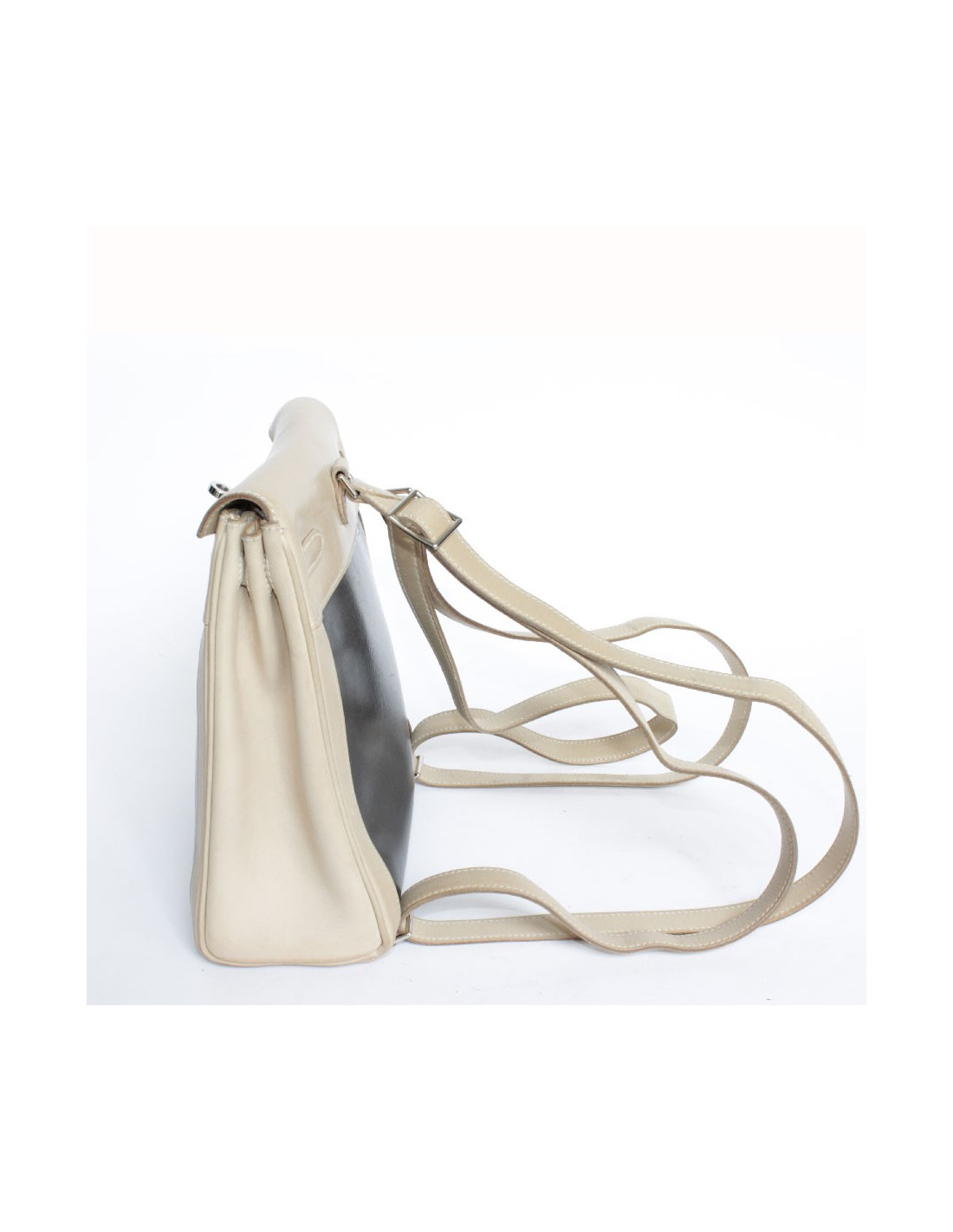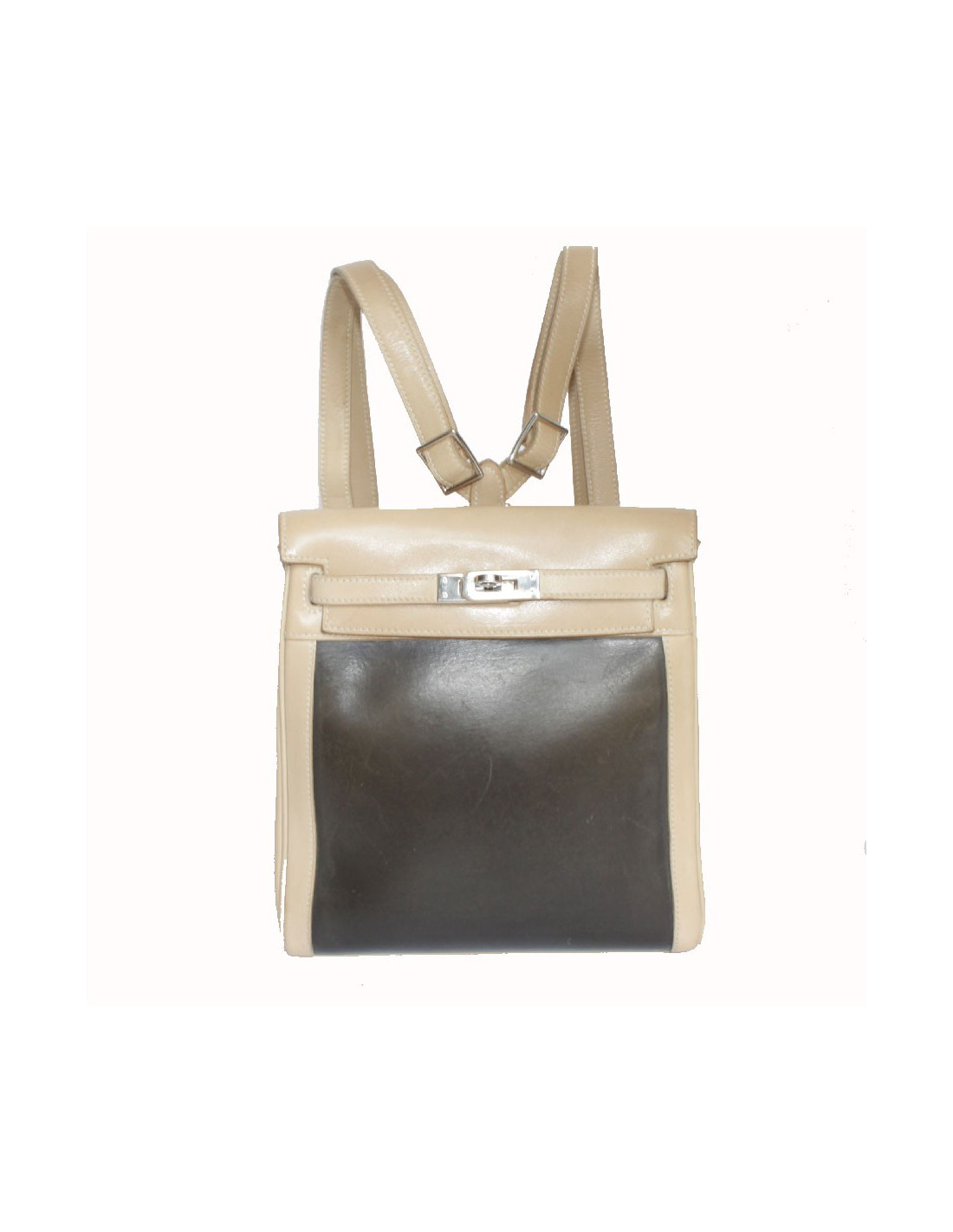 Backpack Backpack, Kelly Hermès, two-tone leather lamb and Amazonia: technical material: extracted SAP of a tree in the Amazon. Silver jewelry. The Interior is leather and canvas with a pocket.