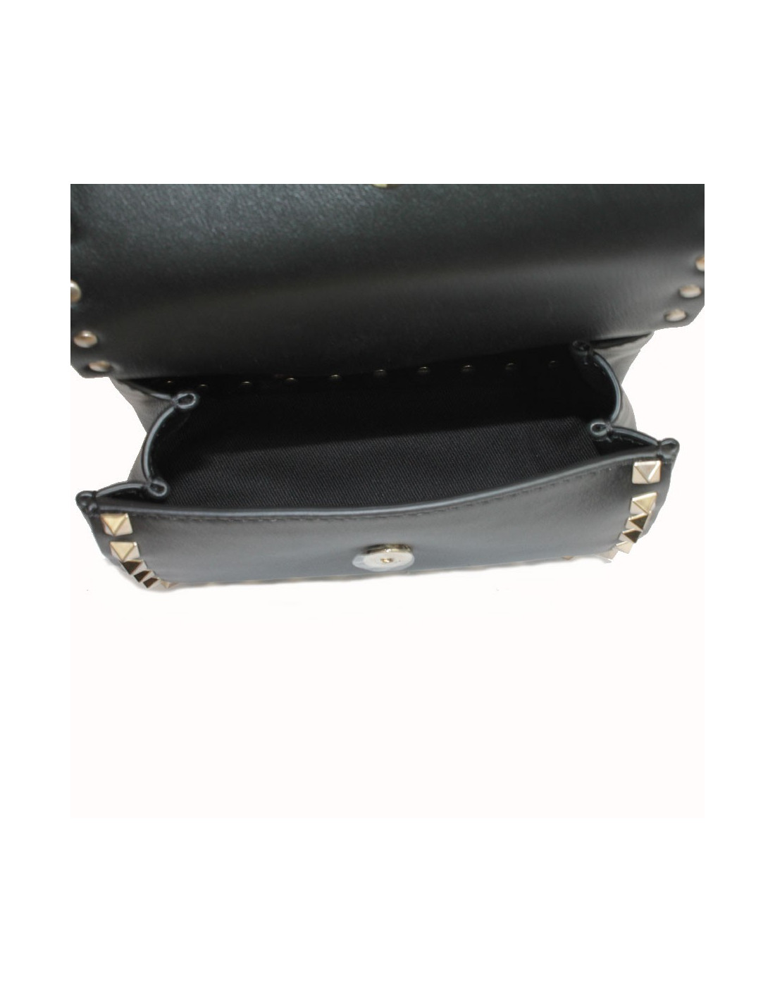 Lovely Valentino Rockstud line clutch in black leather and gold studs.