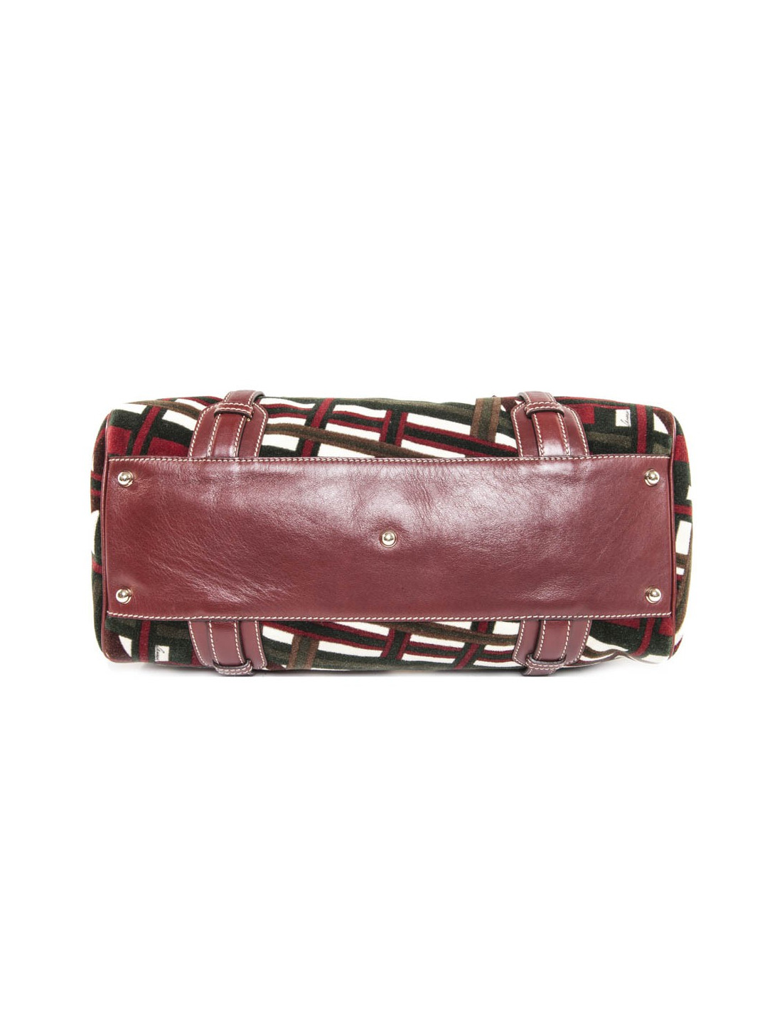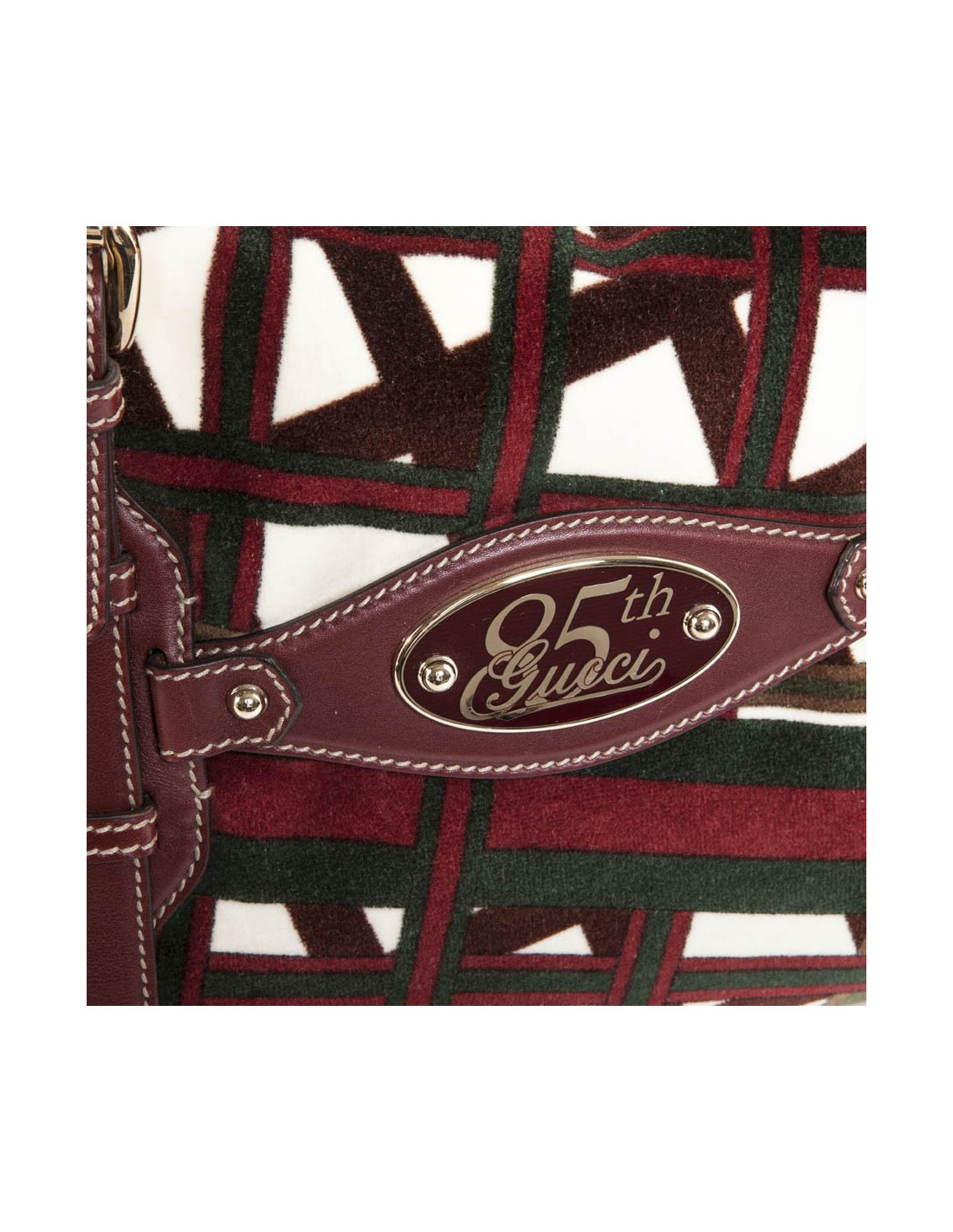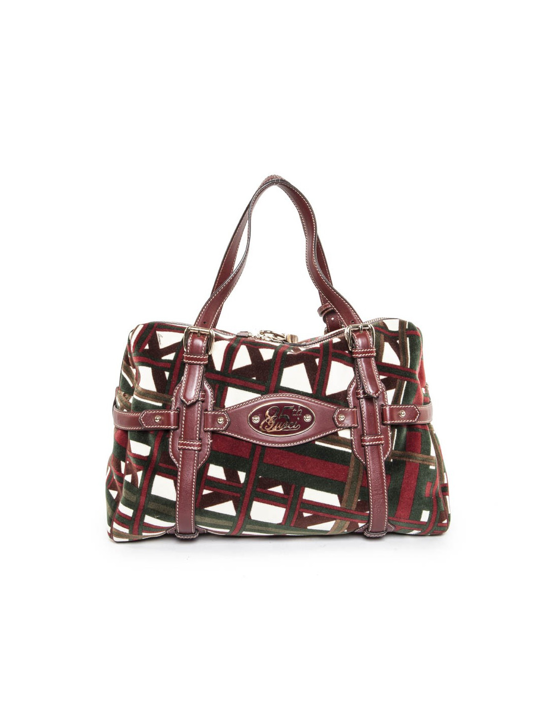 Bag shopping bag in Velvet reasons bolduc and the Gucci Burgundy leather. Pale golden jewelry. At the front, the "JAWS" emblem of the House of Gucci. Zipped. The Interior is in Brown fabric with a large zipped pocket and a pocket for smartphone. In very good condition.