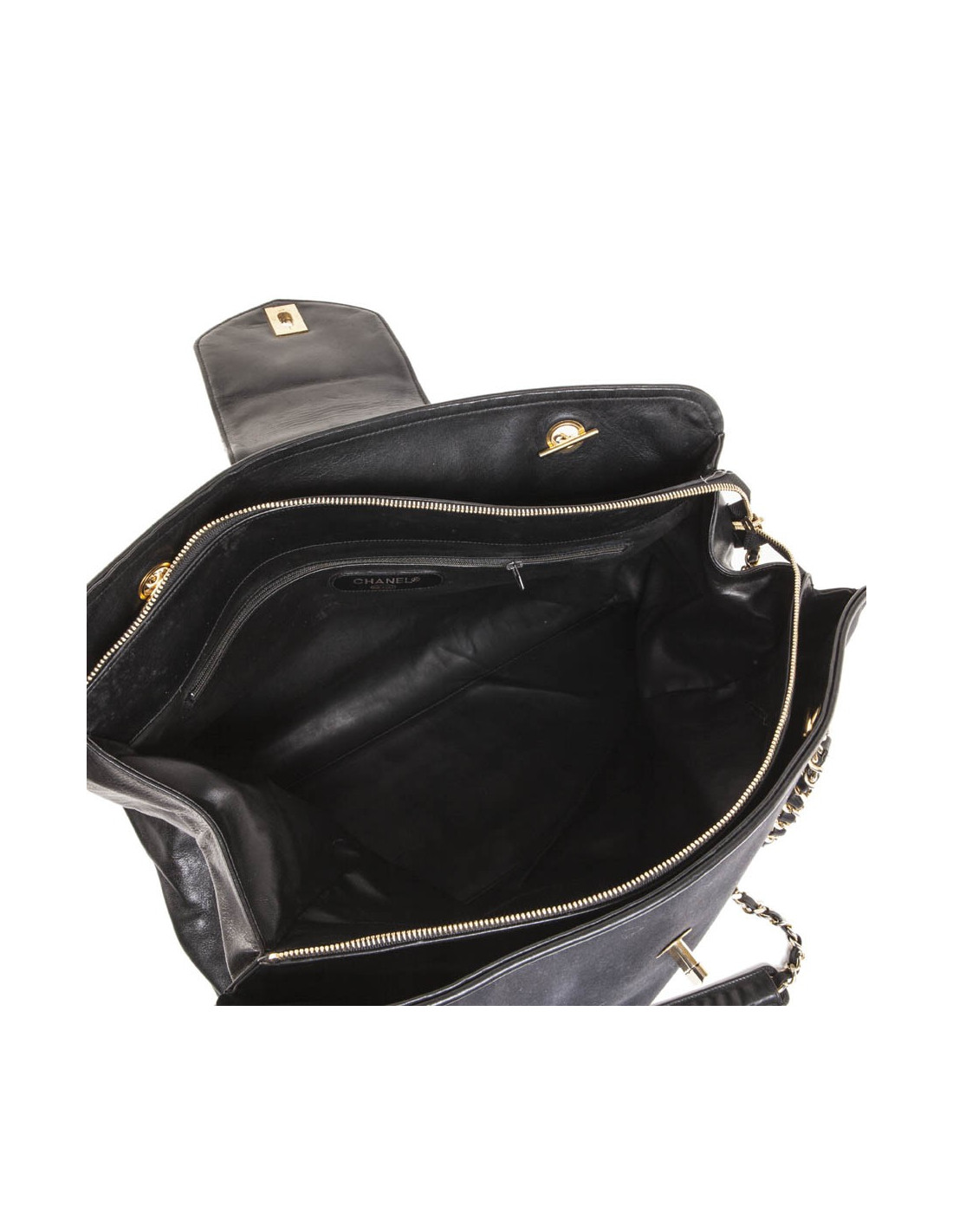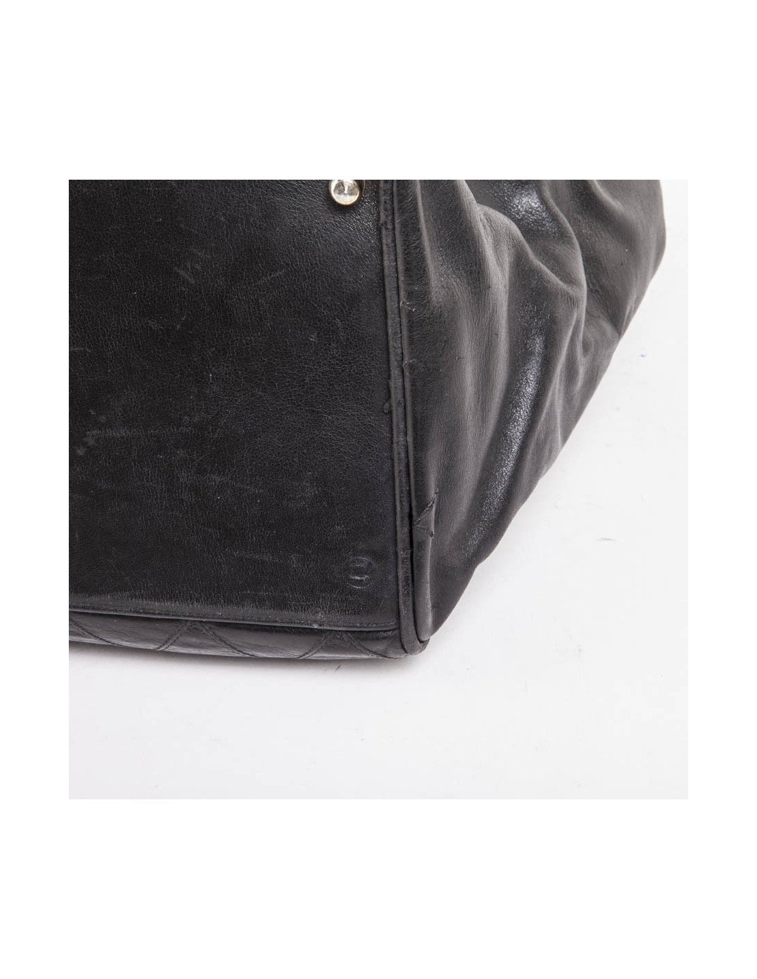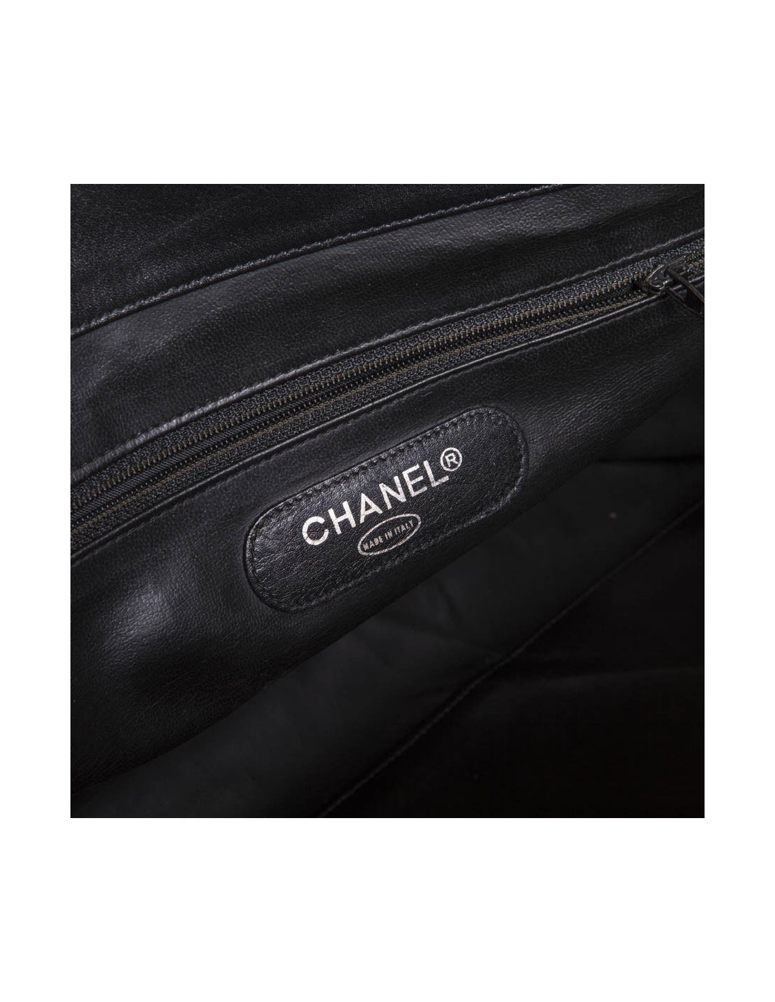 Vintage canvas and black leather Chanel tote bag. Golden jewelry. Zipped. Clasp CC. Inside, leather, 3 bellows. A lot of storage space. No hologram because article vintage. In very good condition. Slight wear to corners under the bag. Micro scratches on jewellery.