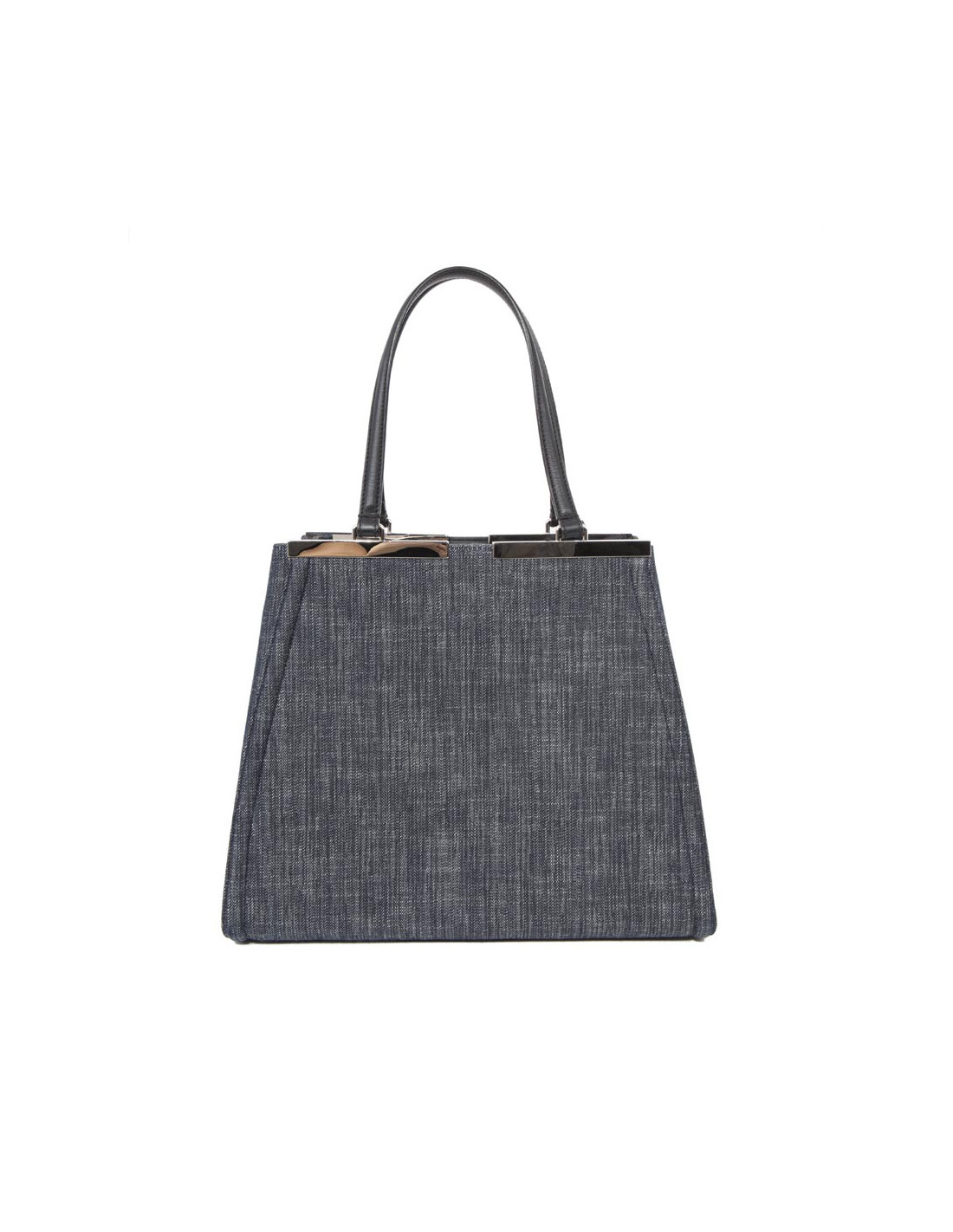 Bag ' 2 days ' of the House Fendi canvas denim. Trim ring silver metal. Double handle in black leather to a door shoulder or by hand. Snap button closure. Suede inner lining is grey with 2 plated pockets and 1 zipped pocket. In very good condition. Serial number: 8BH272...